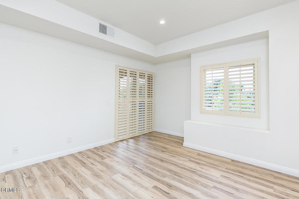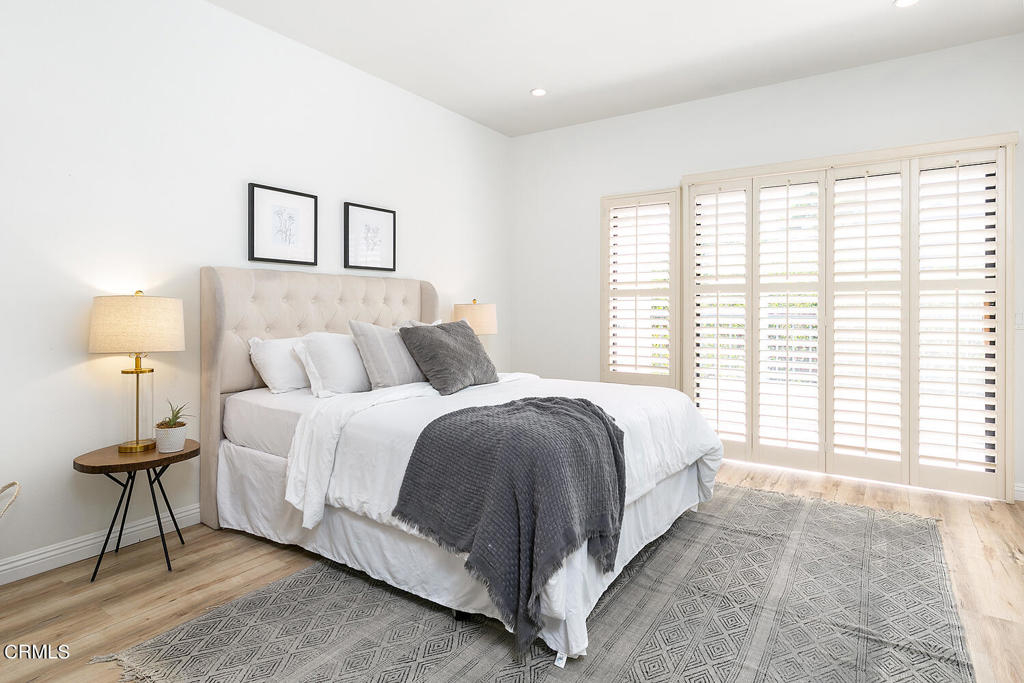 There is much to love about this beautifully updated and spacious 2 BR/2 BA, single level penthouse in a great central Pasadena location. This gorgeous home is an end-unit, has exceptional natural light and only one common wall. You are greeted with a nice formal entry that leads to the large living room with vaulted ceilings, handsome hardwood flooring, newer dual pane windows and doors, plantation shutters, private balcony with an awning for shade and a welcoming fireplace. This is open to the recently remodeled kitchen with all new wood cabinets, recessed lighting, quartz countertops, filtered water and stainless steel appliances. Both the living room and kitchen are open to the light and bright dining area surrounded by windows and treetop views. The ample primary suite also has a private balcony, recessed lighting, large closet with organizers to maximize the space and an updated bathroom with new cabinets and quartz counters. The second bedroom is quite large with good closet space and access to one of the balconies. The hall bathroom has new cabinets, quartz counters and the stackable washer and dryer. Complete with newer HVAC, secured 2-car parking and lots of storage, this tree-top view property feels very private and secluded, yet is just minutes away from the the Gold Line, local colleges, restaurants, shopping and the best that Pasadena has to offer!