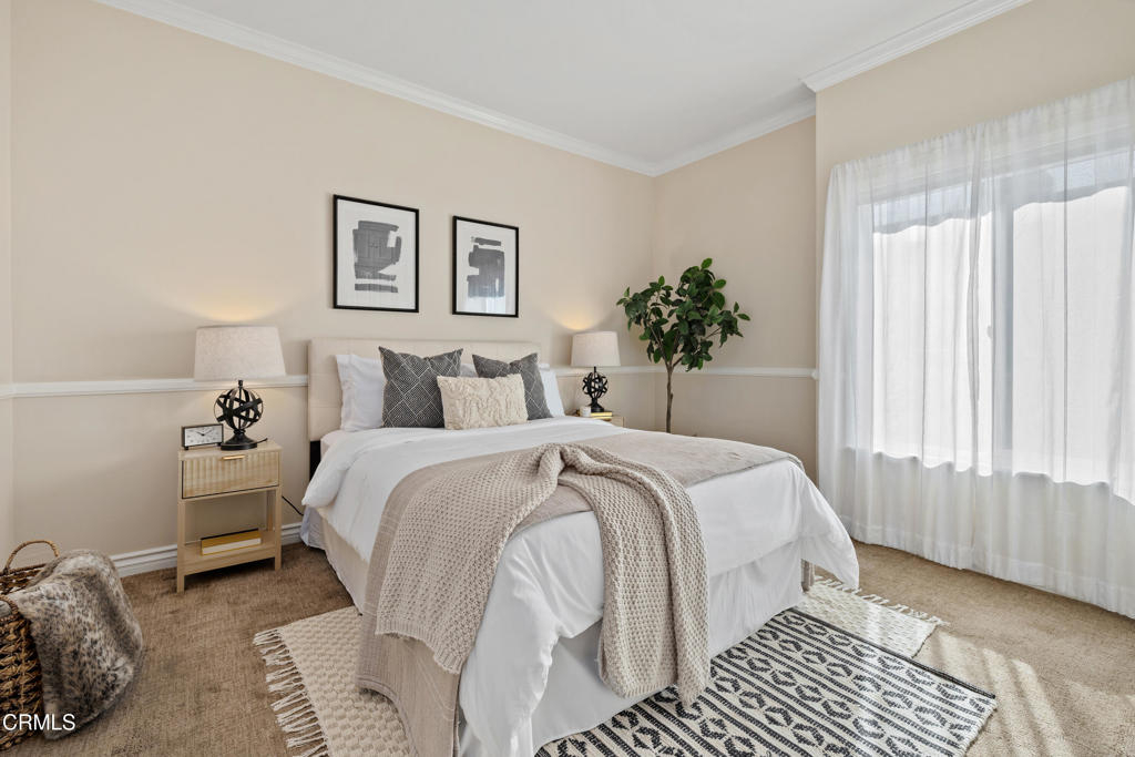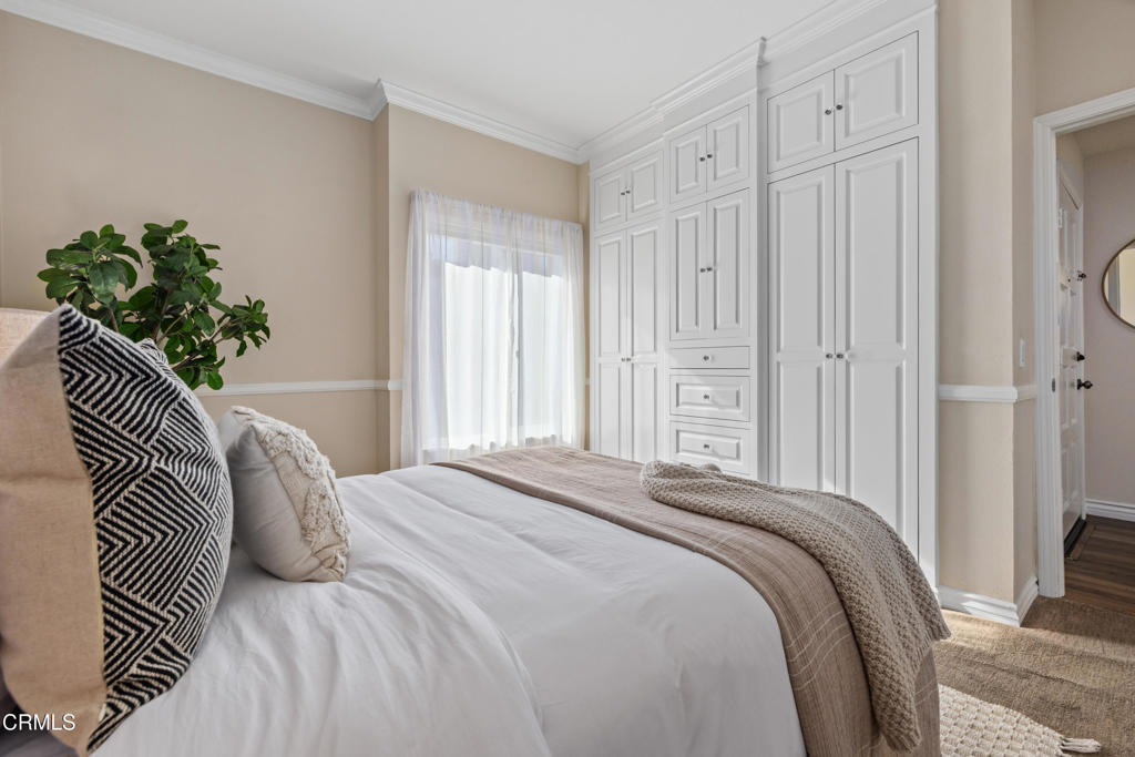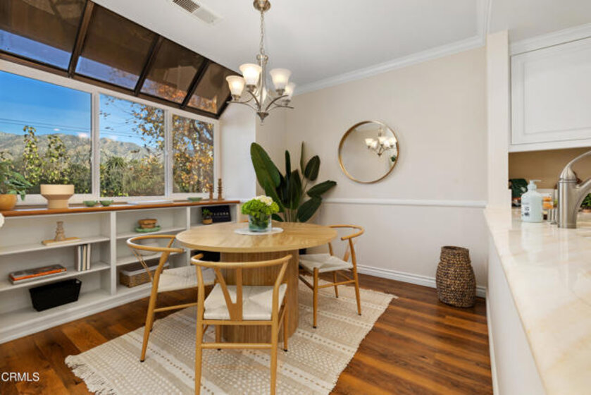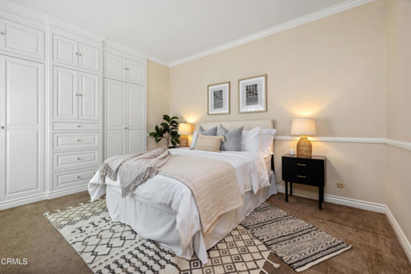 This private top floor, end unit condo blends treetop and mountain view living with a refined, modern sensibility, and is set along a grand Pasadena boulevard near the historic Bungalow Heaven neighborhood. Located within a gated complex with controlled access and elevator service, the home offers a tucked-away feel paired with the coveted privacy of a top-level location with no neighbors above. Inside, stylish turnkey upgrades create a sophisticated yet approachable atmosphere, highlighted by a beautifully renovated kitchen with custom selected granite countertops, a Fisher & Paykel dishwasher, and stainless steel refrigerator, designed to feel equally at home hosting friends or easing into everyday routines. The living area is open plan style and features soaring ceilings with light cascading in from clerestory windows above. Both bedrooms feature an entire wall of custom designed built-in closet and cabinetry, a rare and highly sought-after luxury in condominiums which delivers exceptional storage with a clean, tailored aesthetic. Each bedroom enjoys its own updated, spa-inspired bathroom, offering comfort and privacy rarely found at this price point. Step onto the dining-size balcony to take in a calming mountain backdrop, perfect for morning coffee, sunset unwinding, or a reset at the end of the day. In-unit laundry, central air and heat and 2 side-by-side parking spaces in the secure garage, top off the generous features list. Ideally situated in the center of Pasadena, one is never far from Old Town Pasadena, the Lake Avenue District, Caltech, and all the daily necessity shopping of East Pasadena, including Trader Joes, Whole Foods and Target, and easy access to the 210 Freeway is just a 1/2 mile away. A rare opportunity to enjoy private, modern condo living in Pasadena, set within an established, architecturally rich neighborhood, with the city's energy, culture, dining, and everyday conveniences just moments away.