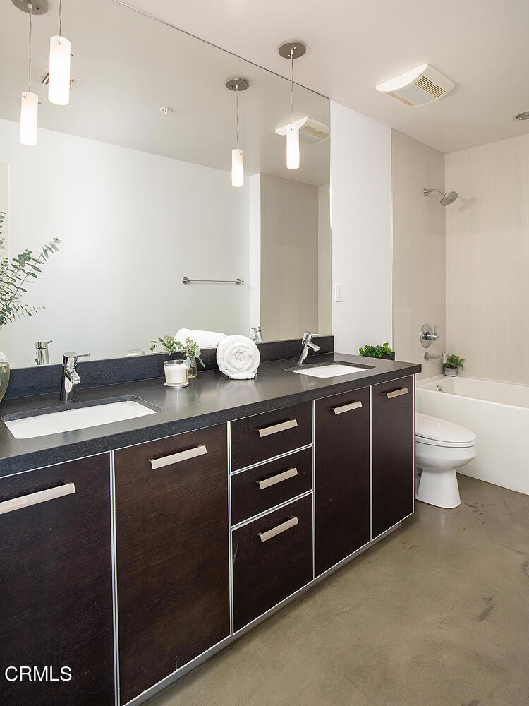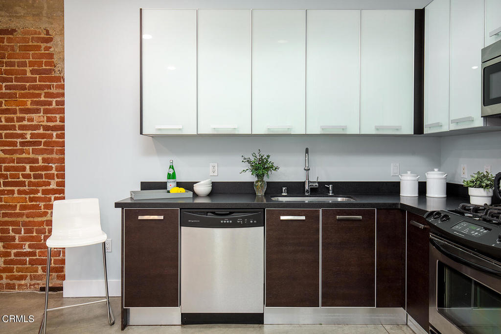 Located in the heart of Pasadena, the Livingstone, originally designed by Myron Hunt, is an award-winning historic preservation development. With a walk score of 94, the Livingstone is easily accessible to Old Pasadena, Paseo Colorado, the Playhouse District, and South Lake Avenue. This amazing first floor floor unit is one the most desirable one bedroom units in the complex. It features a bright open plan design that offers a combined living room, dining area and kitchen that is roomy and reminiscent of high-end Manhattan living. Enjoy design features that perfectly blend the old and new with exposed brick walls, scored and polished concrete floors, high ceilings, oversized double hung windows, and custom shutters throughout. Kitchen boasts plentiful custom soft close cabinetry, stone counters and stainless appliances. The primary suite offers exposed brick walls and spacious closet. The well appointed bathroom is large with custom cabinetry, stone counters, hand laid tile, and a deep luxurious soaking tub. Inside laundry with washer and dryer and additional closets for tons of storage. Also noteworthy are access to two shared and gated outdoor spaces plus assigned underground parking. Pasadena's urban lifestyle awaits with restaurants, shopping, parks, and the gold line just moments away. The best of Pasadena is just out your door.