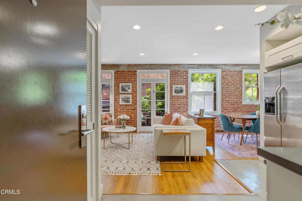 This beautifully appointed one-bedroom, one-bathroom condominium is an absolute jewel and home to the iconic Hotel Livingston. Designed by Myron Hunt & Walter Webber, notable Pasadena architects, the building underwent a significant transformation in 2010. The Hotel Livingston was officially designated as a historical landmark and is included in the Pasadena Historic Preservation Registry. Unit 203 is a successful example of how to blend historic elements such as exposed brick walls and an enchanting, spacious, covered brick patio-style balcony with clean lines, bold colors and modern amenities. The updated kitchen features black granite countertops, stainless-steel appliances, newer subway tiled backsplash and plenty of cabinet and pantry space. The full bathroom, with a shower and tub combination, also features newer subway tile. All the windows bring in plenty of sunlight filtered by verdant treetops. The light-filled, spacious bedroom is no exception. A walk-in closet offers built-ins and plenty of space. Additional features include central air and heat, a stackable washer and dryer and a communal courtyard on the ground level. HOA dues include insurance, one parking space, building maintenance, gas, water and trash. The proximity to the Playhouse Village, the Paseo, Old Pasadena and South Lake Avenue is fantastic. You will never run out of plays to see, movies to watch, things to buy and places to dine. Last, freeway access for the 110, 134 and 210 is only moments away.