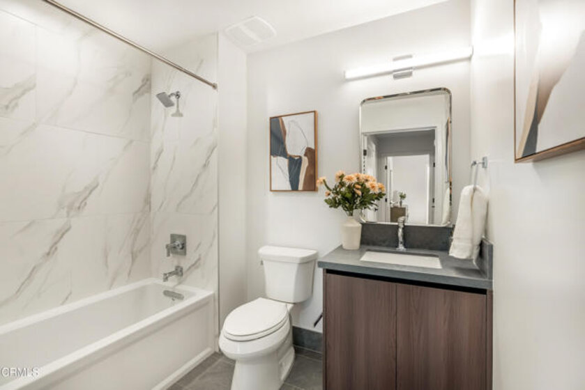 One of 19 stunning new condos in Pasadena's Vibrant Playhouse Village...Welcome to your modern retreat in the heart of Pasadena. This brand-new, luxury condominium blends sophisticated design, quality finishes, and unbeatable location for an elevated urban lifestyle.Step inside to discover an open-concept living area filled with natural light, designer recessed lighting, and wide-plank wood floors that flow seamlessly throughout. The gourmet kitchen features sleek wood-grain cabinetry, premium stainless-steel appliances, quartz countertops, and a full-height backsplash--perfect for cooking and entertaining in style.The primary bedroom suite treats one to a calm, beautiful space complete with oversized windows, custom lighting, and a spacious closet, complemented by a bath en suite. The spa-inspired bathrooms impress with gorgeous vanities that flaunt modern fixtures, quartz counters and elegant large-format porcelain tile.You'll appreciate the private patio--ideal for morning coffee or evening relaxation, but don't miss the spectacular 5th floor rooftop deck featuring multiple lounge areas, lush planters, and a built-in BBQ and fire pit for ultimate ambiance to match the panoramic city and mountain views.Developed by a local builder with a strong track record of creating exceptional condominiums throughout Pasadena, Midtown Condos reflects a deep commitment to quality and community.NOTE: renderings and video depict a similar unit but are NOT photos of the exact unit.