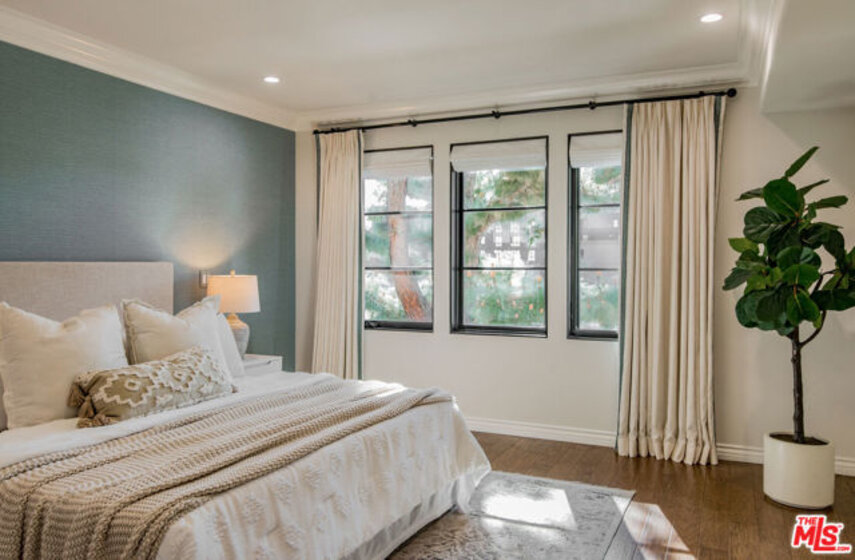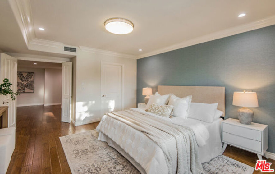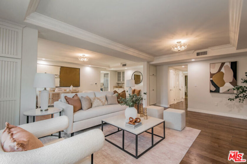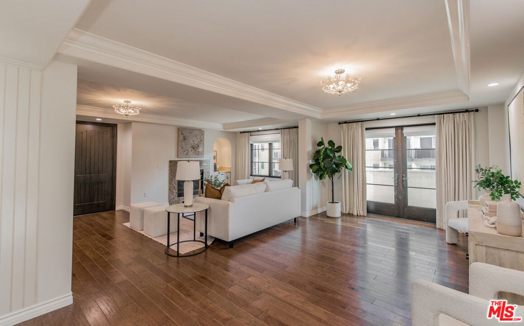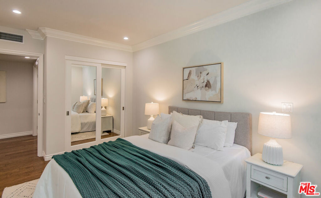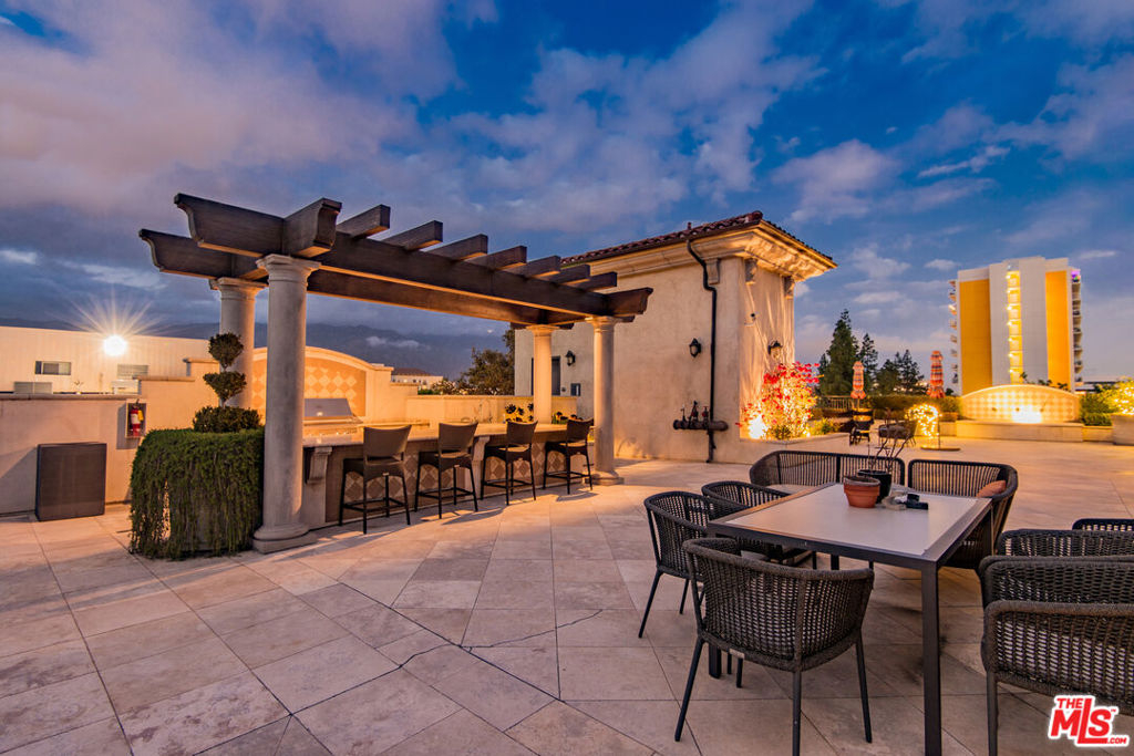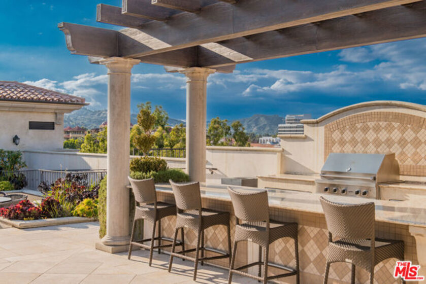 Exquisite single-level living in Terra Bella Pasadena's most coveted address. This impeccably appointed 2,250 SF condominium artfully blends refined materials and thoughtful design for effortless entertaining and everyday luxury. Warm hickory floors flow throughout, while the guest bath is finished in honey onyx tile. The open living room, anchored by a fireplace, opens to a private balcony with sweeping city views. Entertain in a chef's kitchen appointed with Viking appliances, marble countertops and custom cabinetry. The primary suite is a serene retreat, flooded with natural light and anchored by an oversized walk-in closet. The spa-caliber bath features dual marble-top vanities, an expansive walk-in shower and a deep soaking tub with panoramic city and mountain vistas. Two additional bedrooms share a beautifully appointed bath with honey onyx flooring and a walk-in shower. Practical luxury continues with a powder room, dedicated laundry room, generous hall storage and builtin shelving ideal for a library display. Terra Bella caters to discerning buyers seeking privacy and resort style amenities: rooftop cabanas, fire pits, fireplaces, a swimming pool and jacuzzi, fitness center and BBQ areas all with dramatic skyline and mountain views. Minutes from the Rose Bowl, Caltech, ArtCenter, Equinox, Huntington Library and Old Pasadena's dining and boutiques; 11 miles to DTLA and 14 miles to USC. A rare opportunity for elevated Pasadena living.