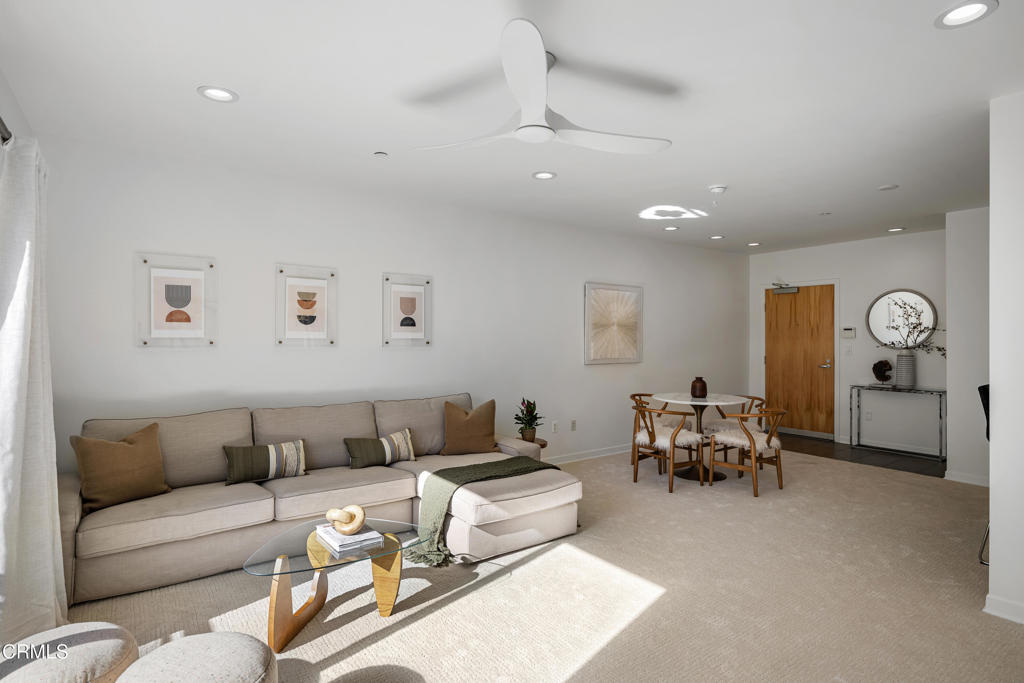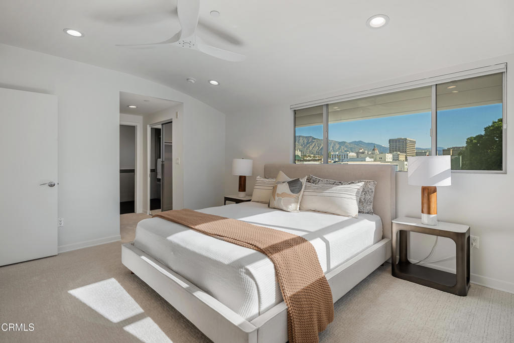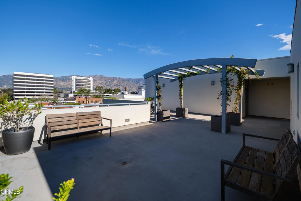 Contemporary Old Town Pasadena Condominium. Pasadena's Coveted location, urban living truly in the center of Old Town Pasadena.Top floor corner unit with Southeast exposure. Watch the Rose Parade from the community 5th floor entertainment deck. Panoramic views of the San Gabriel Mountains and city views are some of the features of this property. No need for a car, there are a number of outstanding restaurants and shops to choose from right outside of your door. A light and bright living room and dining area with recessed lighting, open to the kitchen and a balcony overlooking Green Street.Spacious primary bedroom plus a second bedroom, updated two full baths. New bathroom fixtures and new shower doors in both bathrooms. Kitchen with Caesarstone countertops, newer stove and Bosch dishwasher. New carpet and fresh paint throughout, Newer AC/Heat, washer/dryer, and microwave. The home includes a gated secure 2 car parking spaces. There is a secure street level lobby with intercom entry. Common outdoor spaces and access to the community gym are part of this property.
