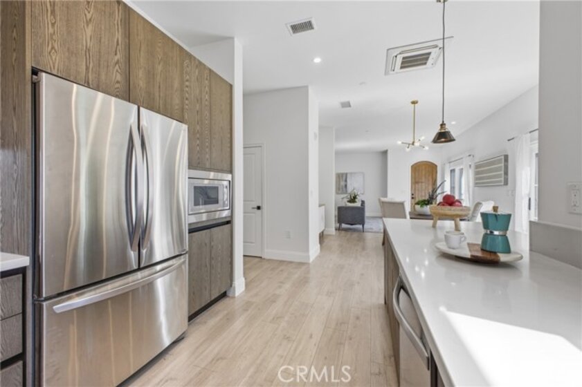 Located on the top floor of the luxury Town & Country community, this spacious penthouse offers an open floor plan filled with natural light. High ceilings and abundant windows create a bright and airy atmosphere throughout the home. The residence features elegant European-style porcelain tile flooring, high-grade Berber carpeting, and a beautifully appointed kitchen with high-end stainless steel appliances, stained wood and frosted glass cabinetry, and a tankless water heater for modern convenience. With three generously sized bedrooms, two enjoy peaceful views of the San Gabriel Mountains. The thoughtful layout combines comfort, privacy, and functionality. Additional highlights include a private two-car garage offering excellent storage and convenient proximity to the elevator for easy access. Residents of Town & Country enjoy secure gated entry, a serene courtyard with mature oak and cedar trees, a tranquil water feature, and a community barbecue area. Ideally located just minutes from Caltech, Pasadena City College, the Huntington Library, shopping, dining, parks, public transportation, and major freeways, this home offers the perfect blend of comfort, convenience, and Pasadena charm.
