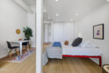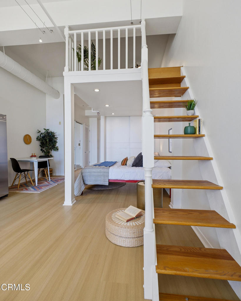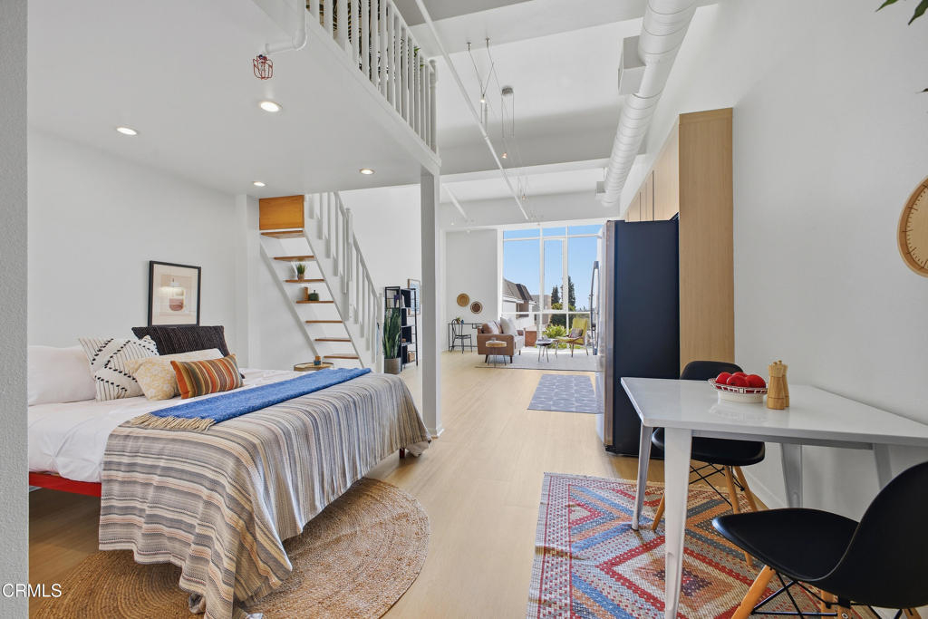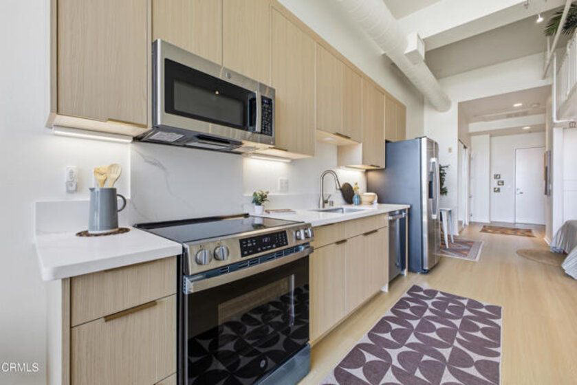 Enjoy urban living in one of the most desirable areas of the South Lake District, just moments from popular restaurants, transit, William Sonoma, banks, and a vibrant shopping scene.This bright, modern residence features soaring vaulted ceilings and an open-concept layout filled with natural light from a dramatic floor-to-ceiling window with automatic shades--creating a stunning focal point and showcasing city views.The sleek kitchen is equipped with light wood cabinetry, quartz-style countertops, stainless steel appliances, and ample storage, perfect for everyday living and entertaining. Additional highlights include in-unit laundry, a well-appointed full bathroom, and generous closet space throughout.A versatile mini loft provides the ideal space for a home office, reading nook, or extra storage. This single-level unit offers easy accessibility with no steps. This unit has been recently renovated with newer appliances, kitchen cabinetry and more.Complete with one gated, secured underground parking space and keycard building access, this home combines style, comfort, and convenience in an unbeatable location.