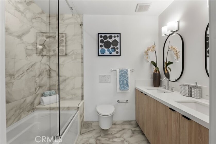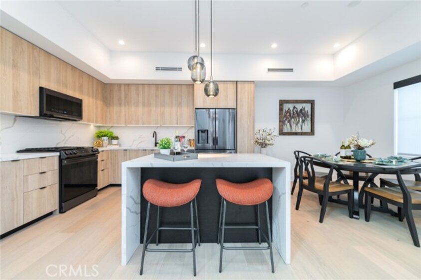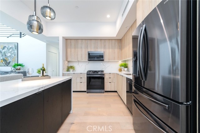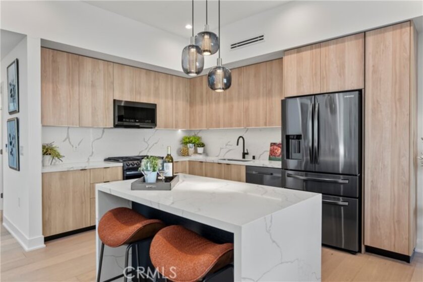 Experience elevated living in one of only three exclusive penthouse residences at the modern and beautifully designed 178 South Euclid condos. This top-floor, two-level unit offers the ultimate in luxury and privacy, featuring both a spacious entry patio and your own private rooftop terrace—with stunning, unobstructed views of the mountains, treetops, and city skyline. It's truly the best view in the building. Lightly lived-in by the owners – shows like new! Inside, soaring 30-foot ceilings and a dramatic wall of windows flood the open-concept living room and kitchen with natural light. Premium finishes throughout include sleek Italian cabinetry, quartz countertops with waterfall island, Samsung appliances, and modern linear HVAC vents. The architectural staircase adds a bold, contemporary statement. The main level includes an owner’s suite with en-suite bathroom, a second bedroom, and a full guest bathroom. Upstairs, the loft is currently being used as an office, but it’s also ideally suited as a third bedroom, featuring its own closet and a private bathroom with shower. The private rooftop patio, located just off the loft, is outfitted with privacy glass and offers spectacular north-facing views of the mountains and iconic city landmarks—perfect for relaxing or entertaining. Convenient and centralized location with a short walk to The Paseo, the sprawling shopping district that offers a range of trendy retailers, restaurants and a multiplex theater. Also, just steps from the Pasadena Convention Center and the Ice-Skating Center. Quick access to 210, 110 and 134 fwys. Additional features: · 2 assigned parking spaces · Private storage room. Don't miss this rare opportunity to own one of the most desirable penthouse units in Pasadena’s vibrant Playhouse! Buyer to verify square footage. This is a dream home you do not want to miss!