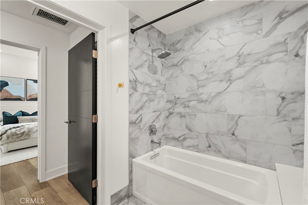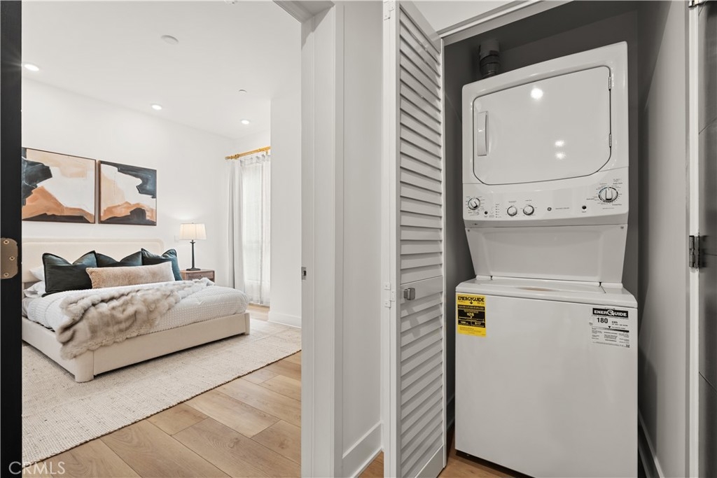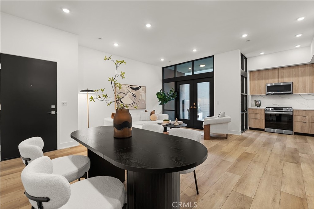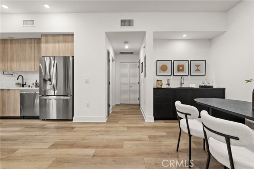 Modern Luxury with the Largest Private Patio in the Building – Prime Pasadena Location Welcome to 178 S. Euclid Avenue #105, a sophisticated ground-level residence in one of Pasadena’s premier contemporary buildings. Ideally situated in the heart of the Playhouse District, this home offers modern design, vibrant city access, and the largest private patio in the building—courtyard-facing at the rear for added privacy and quiet. This light-filled 1-bedroom, 1-bath condominium features soaring ceilings, sleek dark metal finishes, and light oak-tone flooring that brings warmth and style to the modern interior. The open-concept kitchen flows seamlessly into the living area and out to the expansive private patio, creating a true indoor-outdoor lifestyle ideal for relaxing or entertaining. The modern kitchen is equipped with premium Samsung stainless steel appliances, generous cabinetry, and clean contemporary lines. The spacious bedroom includes an upgraded designer walk-in closet with custom built-ins for exceptional organization and storage. The spa-inspired bath features refined finishes and stylish fixtures. In-unit laundry adds everyday convenience. Additional amenities include: • 1 assigned parking space in secure underground garage • 1 dedicated storage space • Digital/keyless building entry • Shared resident lounge/work space • Beautifully landscaped, sustainability-focused courtyard Located directly across from the Pasadena Convention Center, Civic Auditorium, Equinox, and Ice Skating Center, and moments from world-class dining, shopping, and cultural destinations. The Metro A Line is just blocks away, offering convenient access to Downtown Los Angeles and beyond. Unit #105 combines privacy, modern comfort, designer upgrades, and exceptional outdoor space in one of Pasadena’s most vibrant neighborhoods.