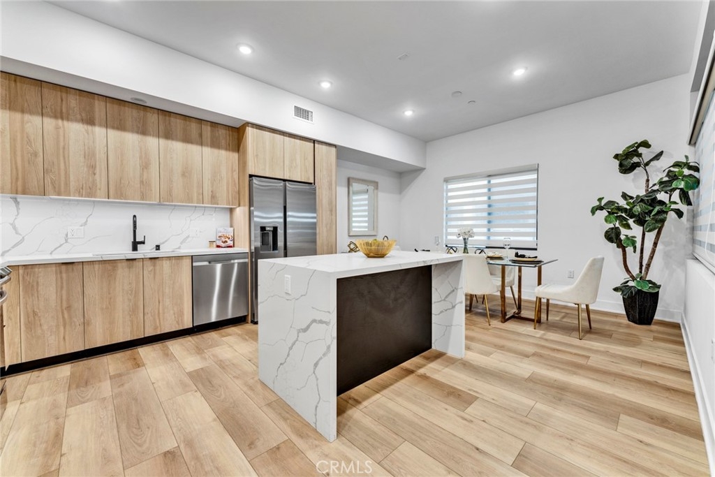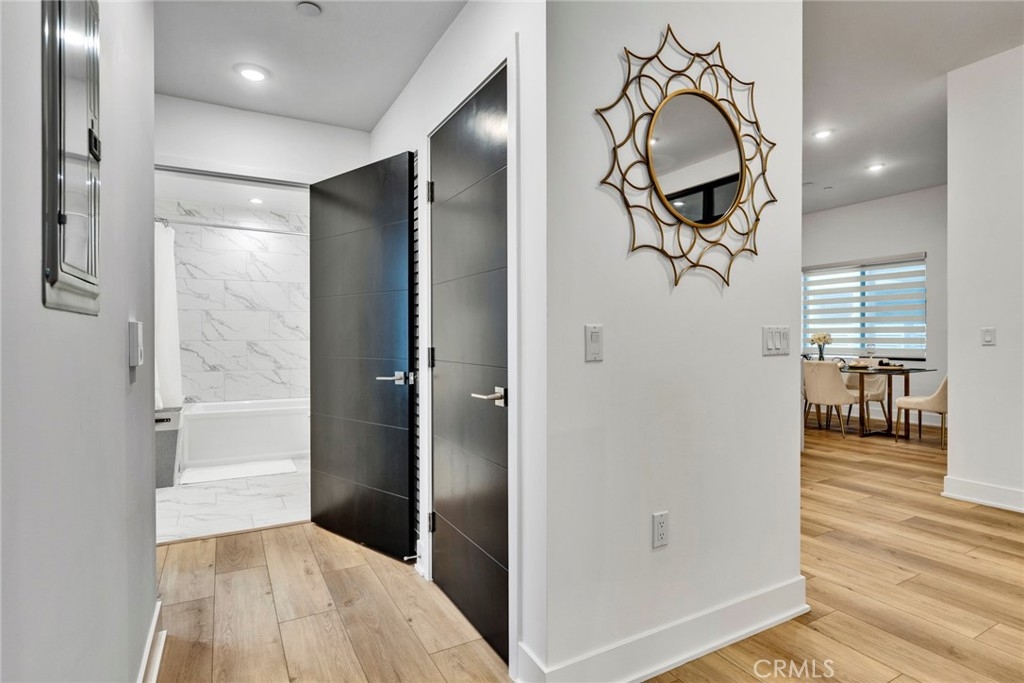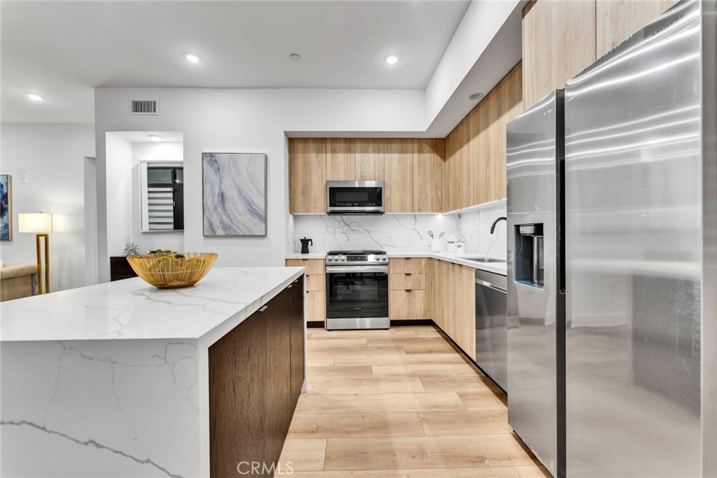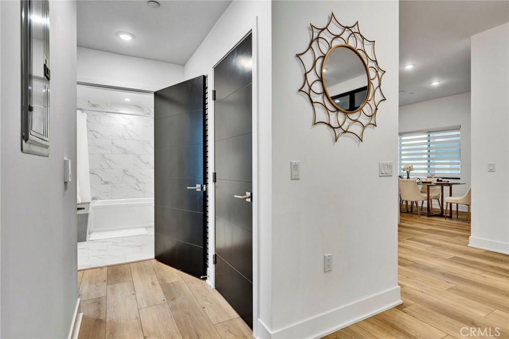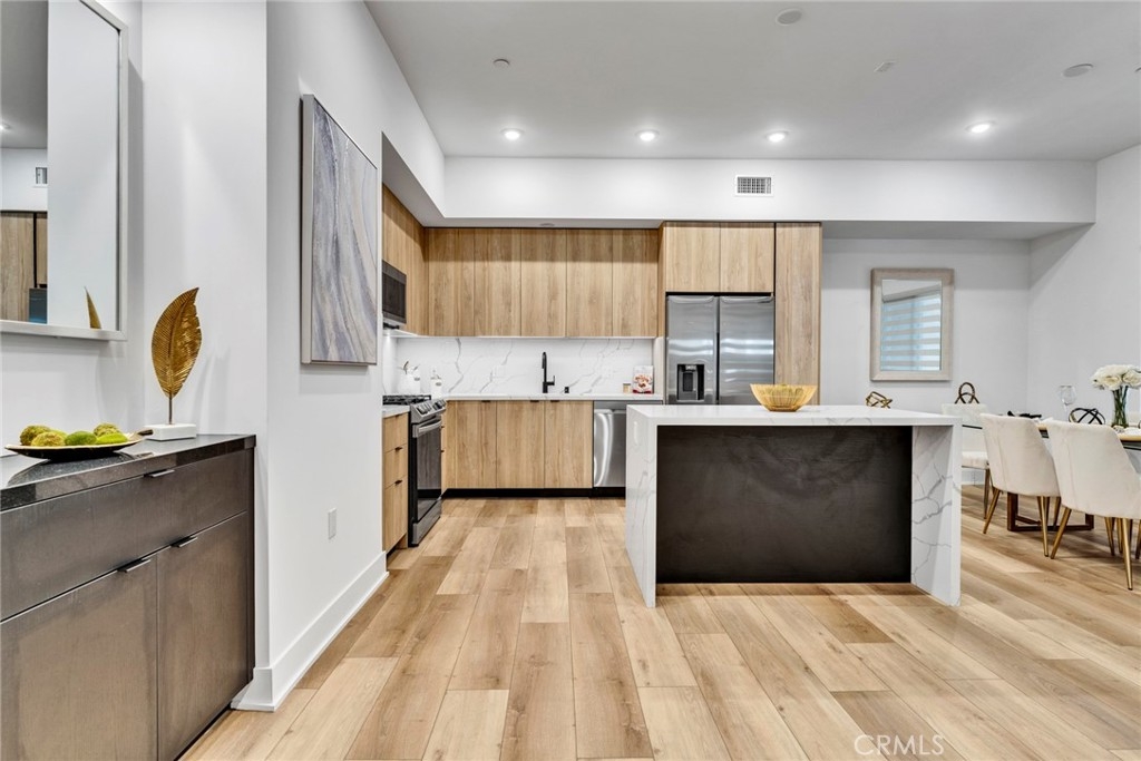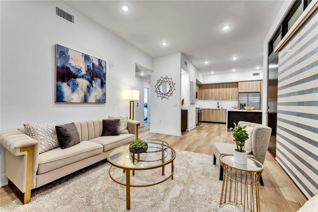 This modern urban condominium, situated in the heart of historic Pasadena, seamlessly combines tranquility and convenience. Residents can enjoy a spacious common area designed for recreation and relaxation. The open-concept layout is bathed in natural light, highlighting sleek hardwood floors and modern amenities. The unit features top-notch Samsung appliances, built-in closets, in-unit laundry, and abundant storage space, including in the secure underground garage. The modern kitchen is equipped with stainless steel appliances, upgraded countertops, and ample storage. The dining area is perfect for intimate dinners or entertaining guests. The cozy bedroom offers generous closet space and total black-out blinds to ensure restful sleep. The bathroom boasts stylish fixtures, creating a serene, spa-like atmosphere. Experience the best of Pasadena living with convenient access to dining, shopping, and entertainment.