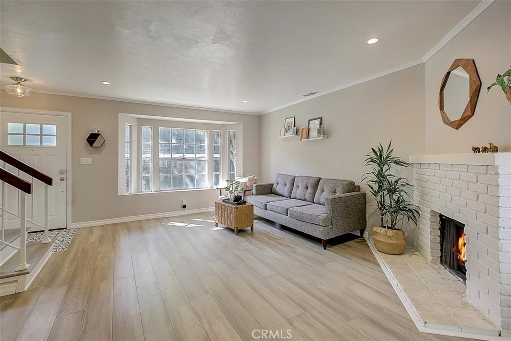 Charming Cape Cod townhouse in treasured Knowleton Court, move-in condition, and great architectural features including a bay window, vaulted ceilings, skylights, fireplace, and kitchen garden window. Gated entry and an updated landscaped walkway through trees to the end unit with brick steps to the front door. Large bay window pours in natural light throughout the lower level. Inside is a spacious living room w/ a fireplace & a powder room for guests. A separate formal dining room with built-in bench storage is adjacent to the tastefully updated kitchen featuring quartz countertops and Kitchenaid appliances. The kitchen boasts great storage and a garden window for growing herbs. A skylight floods the newly updated staircase with natural light and leads upstairs to the two bedrooms outfit with sparkling new flooring. The primary bedroom has vaulted ceilings and a closet equipped with an Elfa system. Large bathroom with skylight joins the two bedrooms. Second bedroom is generously sized and also boasts an Elfa closet system. Well maintained community with low HOA. The upcoming Union Street Protected Bike Lane will offer a protected path from your garage straight into South Lake and Old Town Pasadena. This move-in ready, low maintenance townhome is perfect for the busy, urban professional, or student of nearby Caltech, PCC, or ArtCenter.