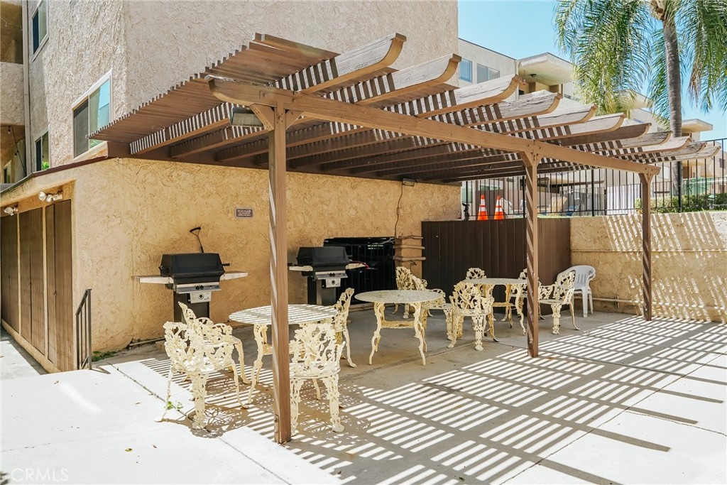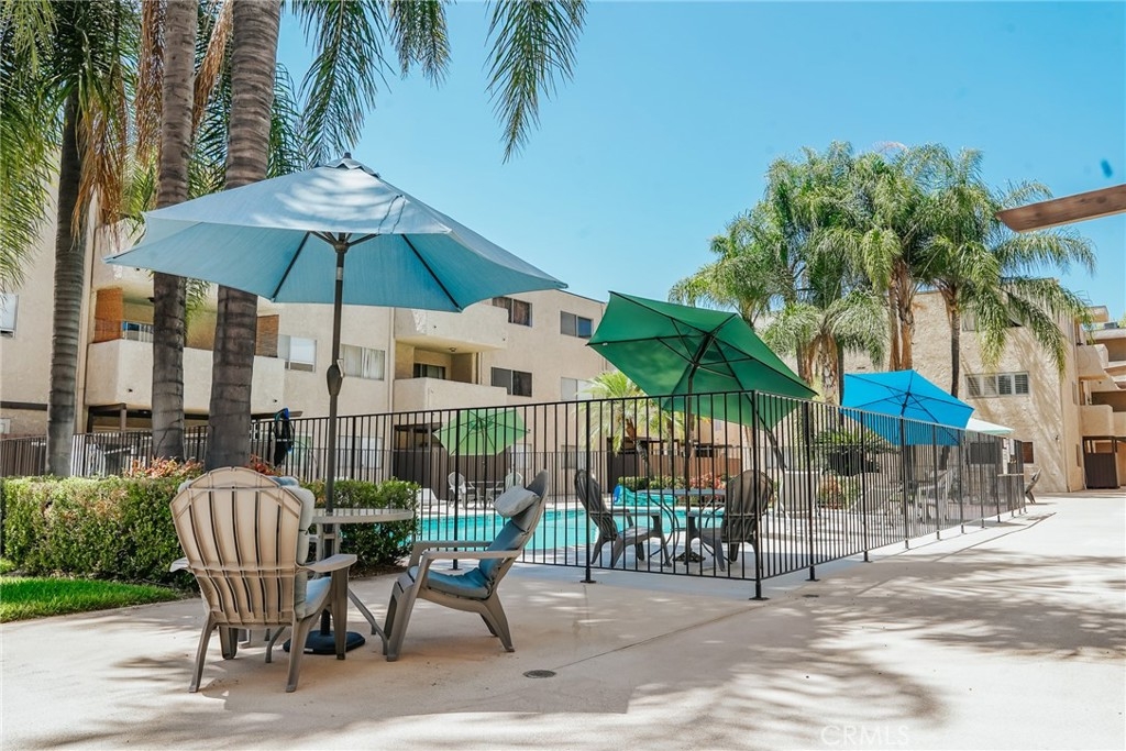 Welcome to an exceptional upgraded 1-story end unit with an open floor plan, adorned with beautiful laminate floors, crown molding, and inviting sliding doors. The space is further elevated by the addition of plantation shutters that infuse charm and a central fireplace that radiates warmth, creating a cozy living atmosphere. The remodeled kitchen stands as a true masterpiece, featuring an abundance of counter space, newly painted cabinets, and a suite of new GE Fingerprint/Energy Star appliances. Built-in features in both the living room and dining area offer seamless storage solutions, effortlessly accommodating your cherished belongings. The Master bedroom is a haven of tranquility, complete with a generously sized closet featuring a built-in dresser for added convenience. Indulge in luxury within the expansive bathroom, where an upgraded jetted tub beckons you to unwind with soothing baths after a long day. Meanwhile, the second bedroom showcases an ingenious design with a Murphy bookcase door that reveals ample closet space. This meticulous attention to space optimization ensures both functionality and aesthetics, resulting in a harmonious and balanced living environment. Experience enhanced comfort with new double pane windows that not only improve energy efficiency but also provide superior acoustic insulation, allowing for a serene and undisturbed living experience. Adding to this comfort is a new AC unit, promising pleasant temperatures year-round, regardless of external weather conditions. The unit's standout feature is an expansive patio – the largest within the building – offering abundant space for gardening, leisure activities, and relaxation. With convenient access to the BBQ and pool area, it's an outdoor haven. The community itself offers additional amenities, including a laundry room, gated-parking, on-site gym and a Billiards Room, creating opportunities for leisure and social interaction that foster connections with neighbors and friends. HOA includes Water, Trash, Gas, and Earthquake Insurance. Nestled in an ideal location, this unit provides close proximity to public transportation, esteemed educational institutions such as PCC and Cal-Tech, the convenient Metro Gold Line, and the vibrant Old Town Pasadena. This strategic positioning ensures a seamless connection to the city's finest retail, dining establishments, as well as cultural and entertainment offerings. Experience the epitome of contemporary living at its finest.