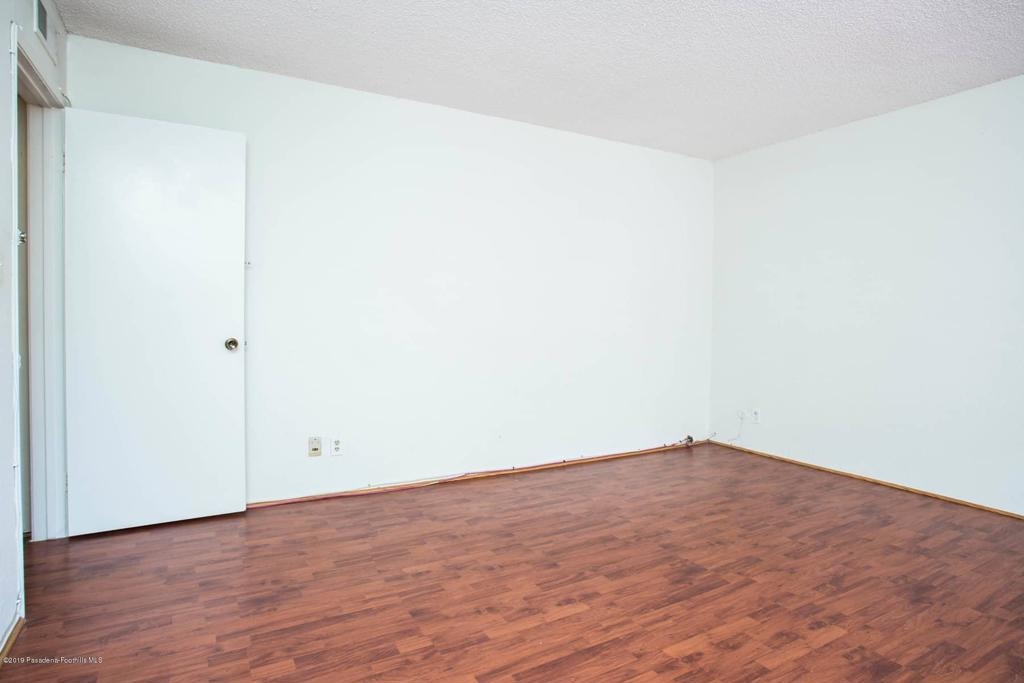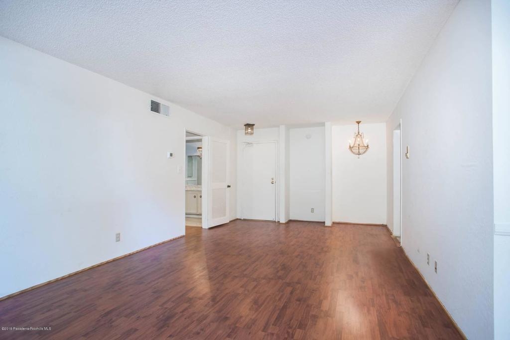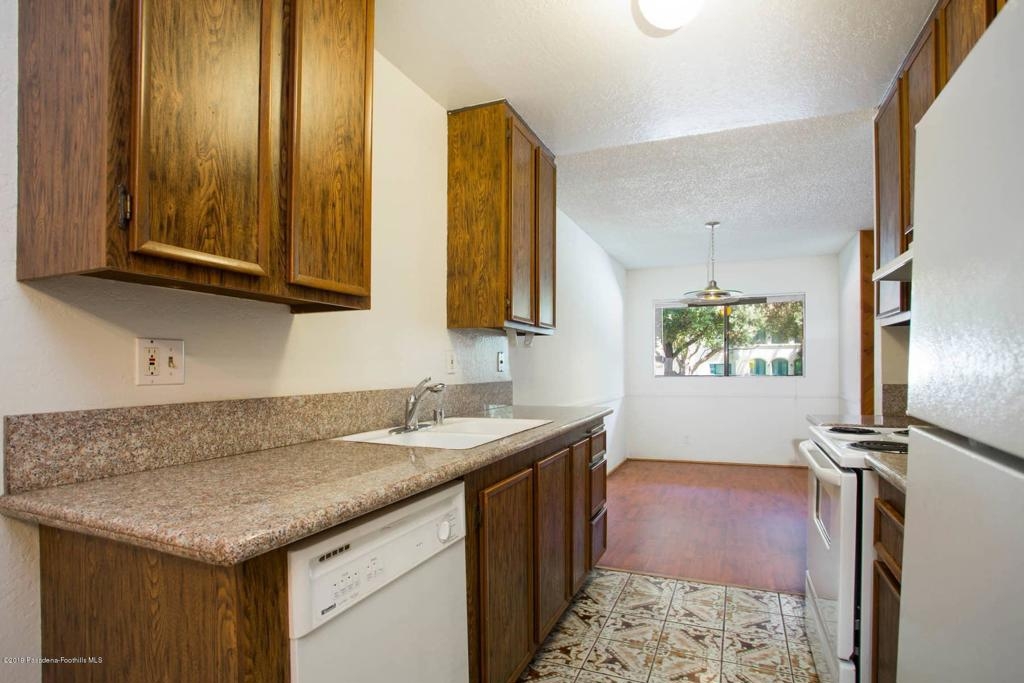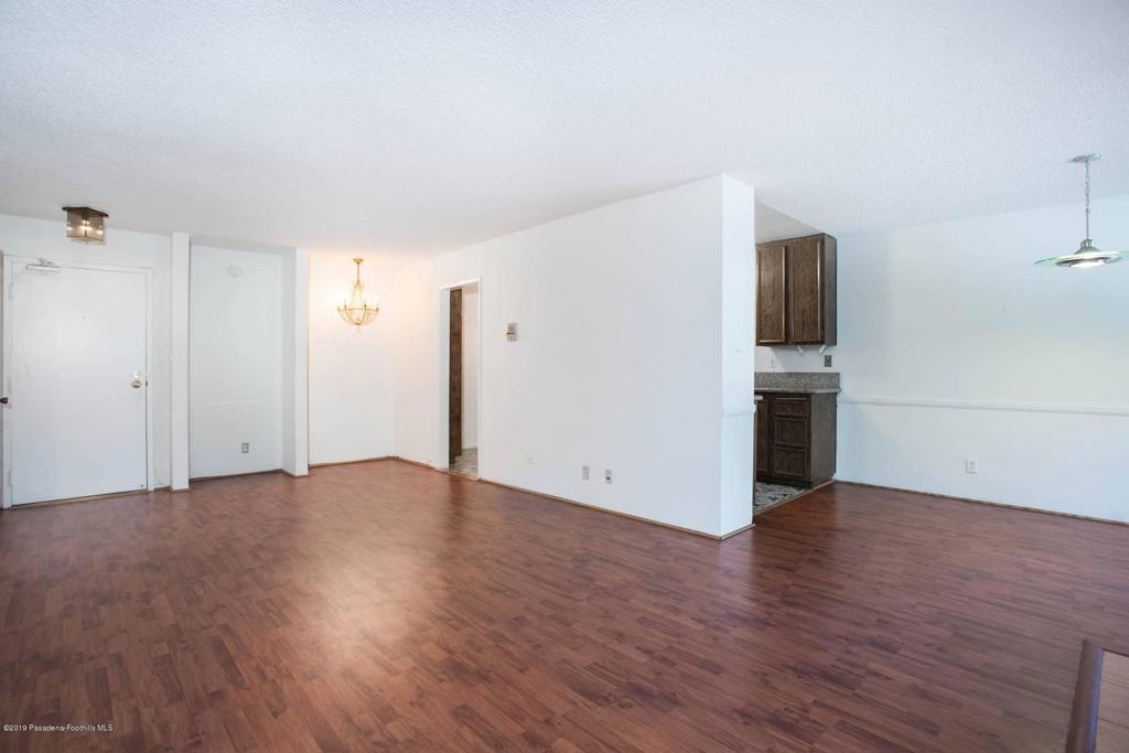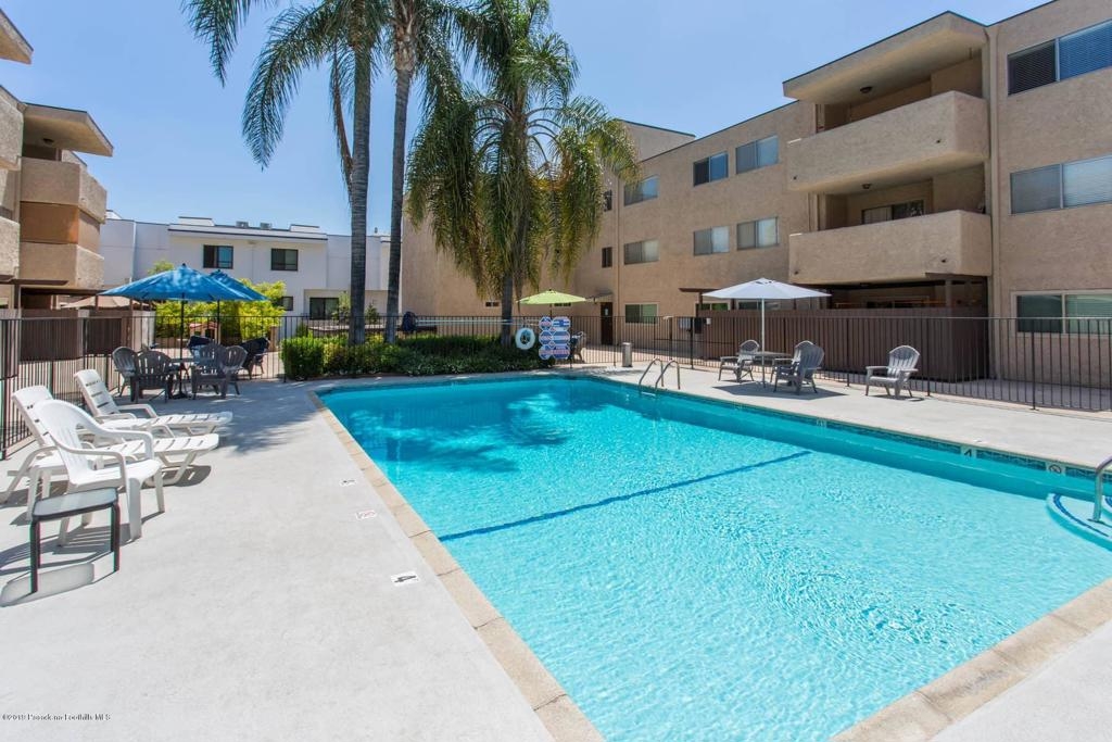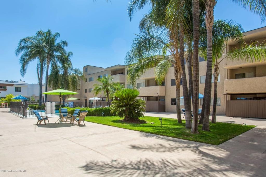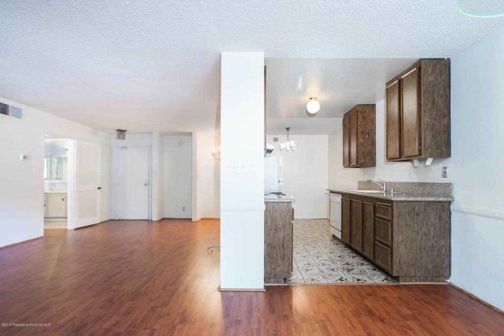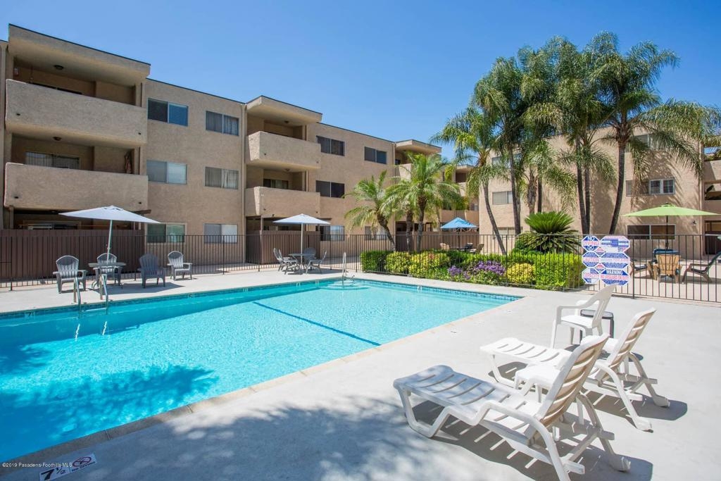 Welcome to the largest 1 bedroom condo in The Del Mar Sierra Manor Complex. This extra spacious end unit offers a light and bright open floor plan, with a huge private balcony and views of the San Gabriel Mountains. The unit features gorgeous laminate flooring, granite kitchen counters, a breakfast nook and large pantry as well as an abundance of storage space. The master suite is expansive with one of the largest walk-in closets you may find. The 'retro' bathroom, has a separate shower area and a large vanity for all your storage needs. The heating and air condition unit has been updated in 2018. The complex offers many amenities including a swimming pool and Jacuzzi, a covered BBQ area with tables, a renovated fitness center with updated equipment, a billiard room, game room with ping pong table, a meeting room and 2 large community laundry rooms. The HOA includes water, trash, maintenance, general insurance and earthquake insurance. This secure building has gated subterranean parking with one assigned parking space for the unit. Located very close to grocery stores, restaurants, and only minutes away from South Lake Avenue shopping and dinning, and Old Town Pasadena.