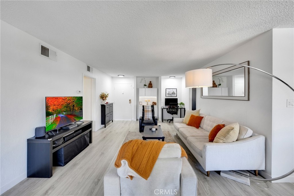 Welcome to this spacious and beautifully updated 3-bedroom, 2-bathroom condo offering 1,501 sq. ft. of bright, modern living. Remodeled in 2021, the home features LG stainless steel kitchen appliances, wide luxury vinyl plank flooring, custom window treatments, fresh paint, and stylish updates to lighting, electrical, and hardware throughout. All three bedrooms are generously sized, filled with natural light, and offer oversized walk-in closets—perfect for those who value both space and functionality. The open dining area and private balcony comfortably fit large tables, ideal for hosting or relaxing. Need flexibility? One bedroom includes French doors that open to the living space, making it an excellent option for a home office, den, or guest room. Storage is a standout feature, including a versatile 6x6 hallway closet that can double as a mini workspace or be outfitted for serious storage needs. The layout is efficient and thoughtful, blending comfort and practicality for a variety of lifestyles. Located in the well-maintained Del Mar Sierra Manor community, amenities include a pool, fitness room, 2 activity rooms, BBQ area, and two shared laundry rooms. The HOA has healthy reserves and appears to be VA approved. There’s also potential to install in-unit laundry with HOA approval, particularly for disability accommodation. All of this comes at an unbeatable price for a 3-bedroom unit in Pasadena. Enjoy close proximity to excellent schools, public transportation, and some of the city’s best shopping and dining—just minutes from Lake Avenue, Old Town Pasadena, San Marino, libraries, and more.