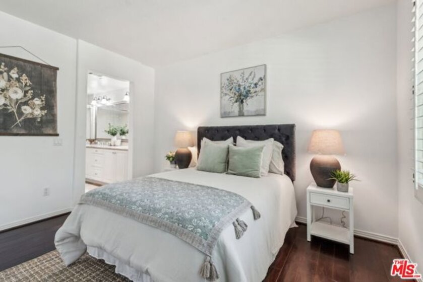 Welcome to Artisan Square, a collection of 52 courtyard townhomes. This beautiful 2-story Spanish Colonial style residence features a desirable open floor plan. The main level offers an inviting living room w/ fireplace, walnut hardwood floors & plantation shutters, kitchen w/ breakfast counter bar, dining area & powder room. Upstairs is a comfortable primary suite w/ an elegant primary bath w/ double sink vanity & walk-in closet. Enjoy the views of the courtyard from the 2nd bedroom & LOFT that can be converted to a 3rd bedroom. A full bath & laundry closet equipped w/ a washer & dryer complete this level. New interior paint & freshly painted cabinets/drawers throughout. There is a 2-car garage (side by side) w/ direct access into this end-unit. The private patio overlooking the courtyard & water fountain is perfect for bbqs/dining al fresco. Conveniently located near shops & restaurants, Victory Park, Gold Line Metro, Old Town Pasadena, 210 Fwy.