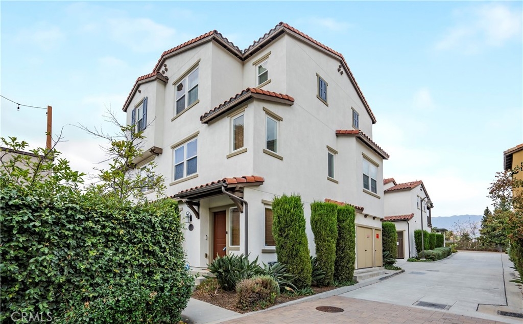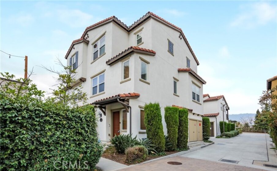 End Unit with 3 En-Suite Bedrooms and attached garages! Welcome to this exquisite tri-level, 3 bedroom, 3.5 bath END UNIT townhome in the meticulously maintained District Walk Townhome Community. On the first level, you’ll find a versatile en-suite bedroom, perfect for guests or a home office. Go up to the second level, you'll find a generous sized family room, a dining room that opens up to the kitchen and a cozy balcony. The kitchen boasts crisp-cut Quartz caesar stone countertops, a stainless steel farmer’s sink, stainless steel appliances, and ample cabinetry for all your storage needs. A charming powder room on this level adds to the convenience and functionality of the space.The third level features two additional en-suite bedrooms, each thoughtfully designed for privacy and comfort. The expansive primary suite offers breathtaking views of the Santa Monica Mountains and a luxurious primary bath with a walk-in shower, dual vanities, and a large walk-in closet. Attached 2 car garage with an electric vehicle charging station and a tankless water heater. Located less than 2 miles from Historic Old Town Pasadena and close to attractions such as the Huntington Library, The Pasadena Playhouse, and Eaton Canyon Falls Hiking Trails, you’ll have easy access to shopping, dining, and the 210 Freeway. Come see this gem before it's SOLD!