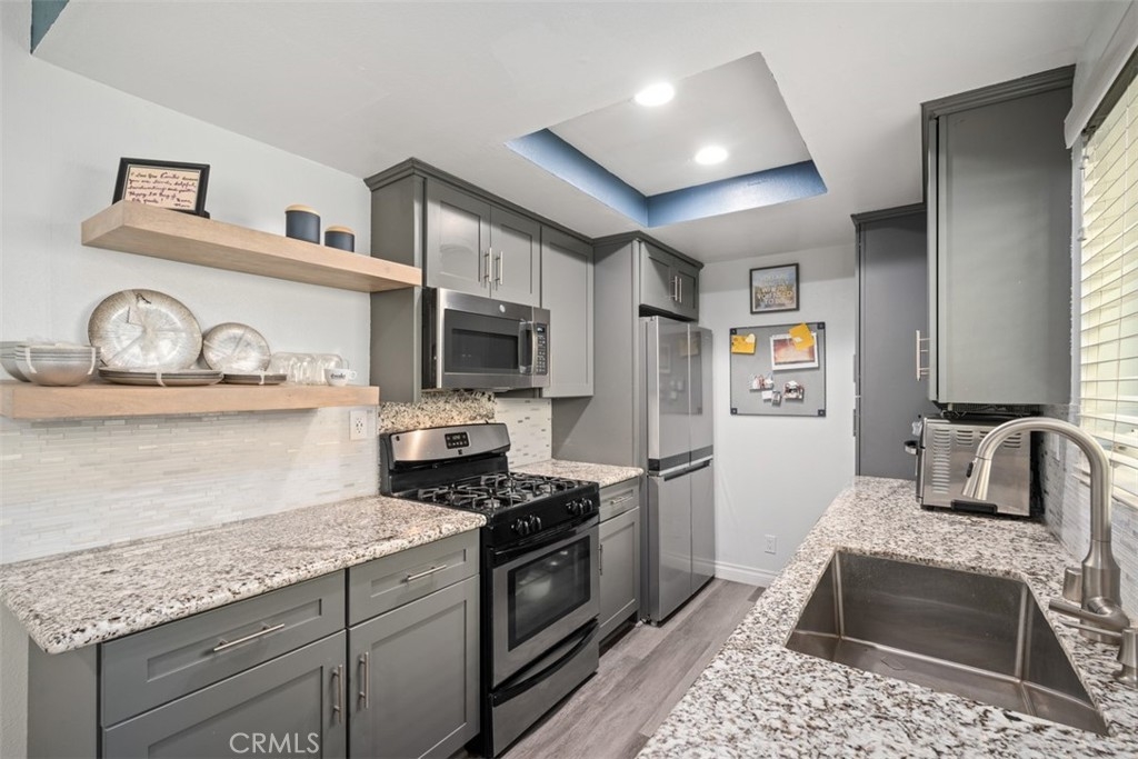 PRICE REDUCTION! Unique and elegantly renovated corner unit boasting a secure private entrance and exclusive outdoor space. Experience serene living in a tranquil complex neighboring San Marino and close to Cal-Tech/PCC. The kitchen is a blend of style and functionality with fresh granite countertops, modern recessed lighting, a chic backsplash, new flooring, and abundant cabinetry, complemented by recent appliances and built-in wall features. Both bathrooms have been stylishly updated with daltile and granite surfaces. Freshly painted interiors, a spacious laundry room equipped with a Samsung washer & dryer, and low HOA fees further enhance this offering. Benefit from 2 gated parking spots and 4 additional storage units above the parking area. This pristine unit awaits its next owner!