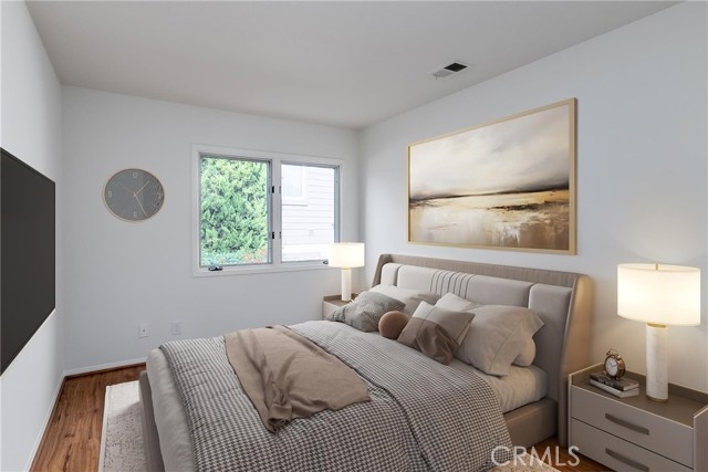 Located in the desirable California Rose Court, this Virtually Staged 3 bedroom, 2.5 bath townhome style PUD was recently refreshed for sale. This unit features a flexible floor plan allowing the new owner the opportunity to decide the best way to use the interior space. It is currently staged with the living room, dining room and fireplace sharing a grand space with a sliding glass door to the low maintenance backyard. The kitchen features another possible eating area and sitting area. Upstairs the primary bedroom, with attached private bath and walk-in closet, also has access to a private balcony. The laundry is located upstairs for convenience, along with the 2 other bedrooms, which share the hallway bathroom. This unit also features a house fan. The complex includes a pool, spa, and relaxing greenbelt area. Centrally located, it is close to the city’s popular Saturday Farmers Market and several parks.
