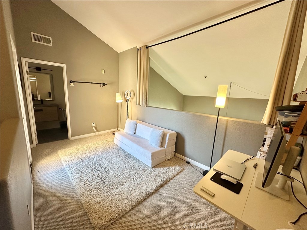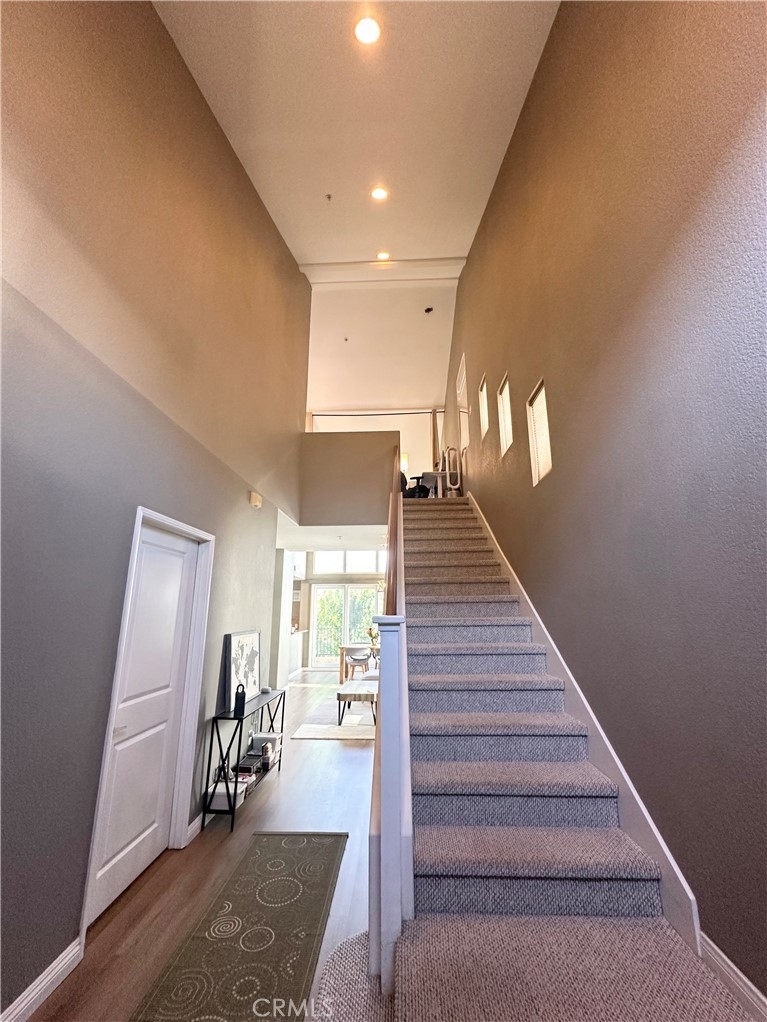 Experience elevated Pasadena living in this rare top-floor remodeled penthouse-style residence situated between Lake Avenue and Old Town Pasadena. Perfectly positioned in the heart of the city’s vibrant dining, shopping, and cultural scene, this stunning move-in ready two-story corner unit condo offers the ideal blend of modern design, privacy, and convenience. From the moment you enter, you are greeted by dramatic approx. 20-foot high ceilings and an abundance of natural light that fills the home through hotel-grade soundproof windows, creating an atmosphere that feels both grand and serene. The open-concept living area, with new luxury vinyl plank flooring throughout, leads to a north-facing balcony with beautiful mountain views, the perfect backdrop for morning coffee or sunset wind down. The chef's kitchen features freshly painted cabinetry, sleek granite countertops, and stainless steel appliances. The spacious primary suite includes a walk-in closet and a fully modernized spa-inspired bathroom with a double-sink vanity and refined finishes. Upstairs, the expansive loft with its own full bathroom offers great versatility as a second bedroom, home office, or creative studio. Then step outside to your own private patio, the perfect place to relax, entertain guests, and enjoy. Amenities include a LOW HOA fee, gated garage and front entry, and EV stations including next to this unit's (1) parking space. Additional features include recently installed new central AC, in-unit laundry hookup, motorized curtains, anti scale water filter, and google nest doorbell. Rarely does a residence of this quality, appeal, and location come to market. A truly exceptional Pasadena offering!