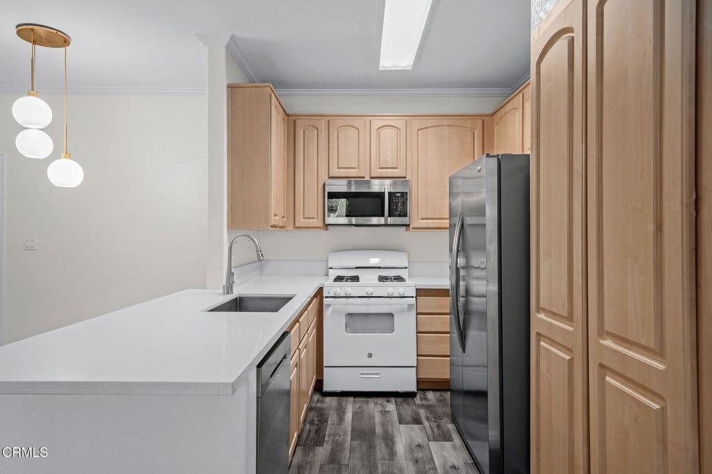 Located in the heart of Pasadena, this stunning single-level condominium offers two-bedrooms and two-bathrooms. Within a quiet and secure building, this condo is moments away from Old Town Pasadena and South Lake Avenue, which has amazing restaurants and shopping. The living room features laminate wood floors, high ceilings, crown molding, gas fireplace and a sliding glass door that leads to your private outdoor patio overlooking a beautiful tree-lined street. The updated gourmet kitchen boasts granite countertops, stainless steel refrigerator, newer dishwasher, newer microwave and a breakfast counter. Both bedrooms are spacious in size with updated en-suite bathrooms and walk-in closets. Additional features include in-unit laundry with newer washer and dryer, central heating and air plus one assigned parking space in a gated underground parking garage. El Molino Terrace amenities include a pool, spa, gym, sauna, recreation room and barbecue area. HOA dues include water, trash, insurance, common areas and high speed internet with Spectrum. Within close proximity to the Pasadena Playhouse, a neighborhood park, and Rose Bowl Stadium.