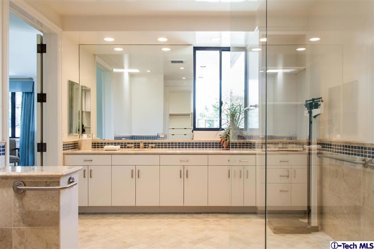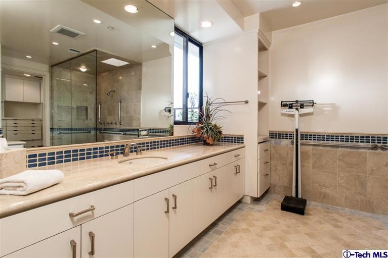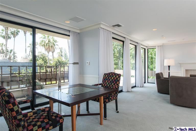 A one-of -a-kind dramatic penthouse in one of the most exclusive buildings on South Orange Grove. Upon entry you will notice the expansive use of glass windows, doors and skylights which allow natural light to flood the unit creating a fabulous indoor/outdoor environment. Tree top vistas as well as Rose Parade views can be seen from inside or from any one of the numerous balconies. Quality appointments include formal entry, paneled library/office, powder room, crown molding, recessed lighting, pocket doors, wet bar. Remodeled kitchen w/generous eat-in area & plenty of built ins. Four bedrooms with en suite baths. The grand Master retreat has a fireplace, fabulous closet and it's own personal balcony. Laundry room w/an abundance of custom cabinets for storage, back stair case, three car side by side parking spaces, a large secured storage room located in the gated garage. Two semi-private elevators exclusively used by the 2 penthouse owners.
