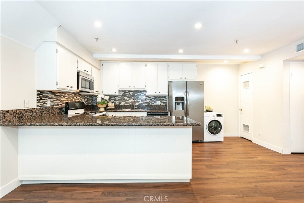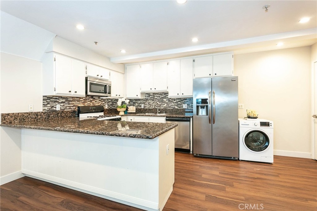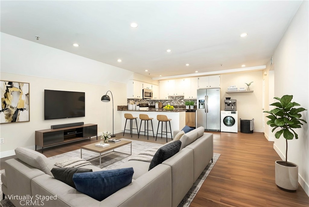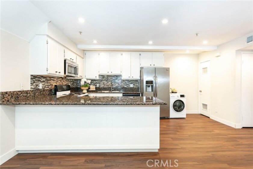 This exquisite condo complex offers an urban lifestyle in a prime location. Ideally situated near Caltech, PCC, Central Park, South Lake Avenue, and Old Town Pasadena, with easy access to dining, shopping, and entertainment. Nearby attractions include the Rose Bowl Stadium and The Huntington Library. Commuting is convenient with access to the 110 and 210 freeways, the Metro Line, and public transportation. The community consists of nine quiet units and features a gated parking garage with remote access, an elevator, mail room, and shared laundry room. Additional highlights include central A/C and heating with Nest control system, recessed lighting, brand-new laminated wood flooring, newly painted interiors, and two assigned side-by-side parking spaces. An open-concept layout connects the living room, dining area, and kitchen, creating a spacious and functional living space. Sliding glass doors provide natural light and access to the front patio. The kitchen features granite countertops, white cabinetry, mosaic tile backsplash, stainless steel appliances, a large island, and an in-unit washer and dryer. Both bedrooms feature wood flooring and operable blinds. The primary suite includes a walk-in closet and an en-suite bathroom with a granite vanity and a shower-over-tub with a framed glass enclosure. The second bedroom can be used as a home office. Blending comfort and practicality in a desirable location, this move-in-ready home is ideal for first-time buyers and investors.