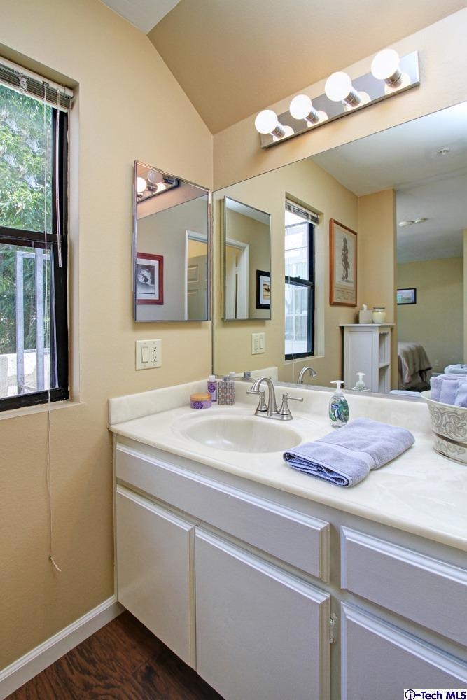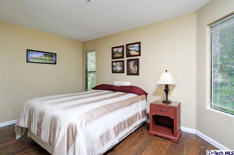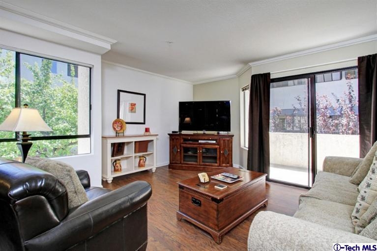 This end-unit townhouse style condo includes 2 bedrooms and 3 baths with an attached 2 car garage. Set at the back of the 8-unit complex well away from the street in the South Lake shopping district and blocks to Caltech, Unit 8 includes a remodeled kitchen with custom cabinetry, newer appliances and granite counters accented by a glass tile backsplash. The kitchen opens directly to the dining and living room area by way of a breakfast bar--allowing the chef to engage with guests. A powder bath is off the main entry. The living room includes an outdoor balcony, fireplace and large picture window with open-space views. Newly installed dark engineered flooring runs throughout the common rooms downstairs and both upstairs bedroom suites. The master has high ceilings and a walk-in closet. The 2nd en-suite bedroom opens to a small outdoor deck. Interior laundry is between the 2 upper suites. The private 2 car garage is directly below the unit and leads directly to the front door of unit 8.
