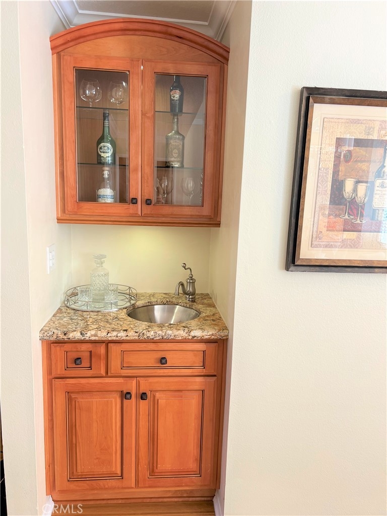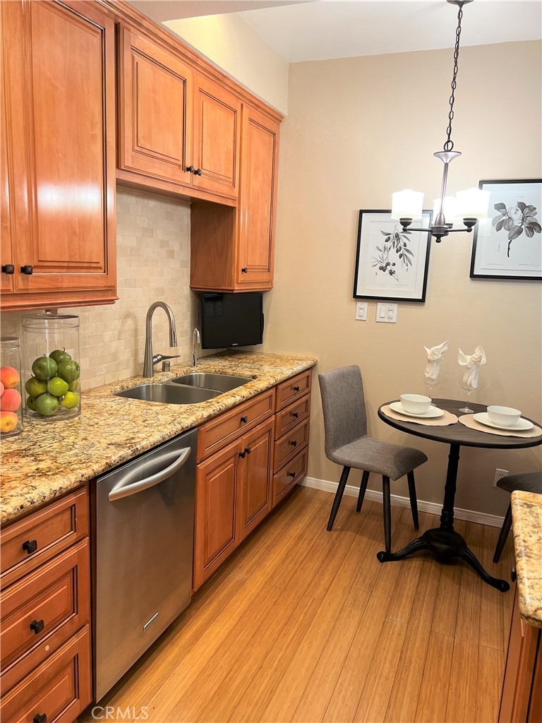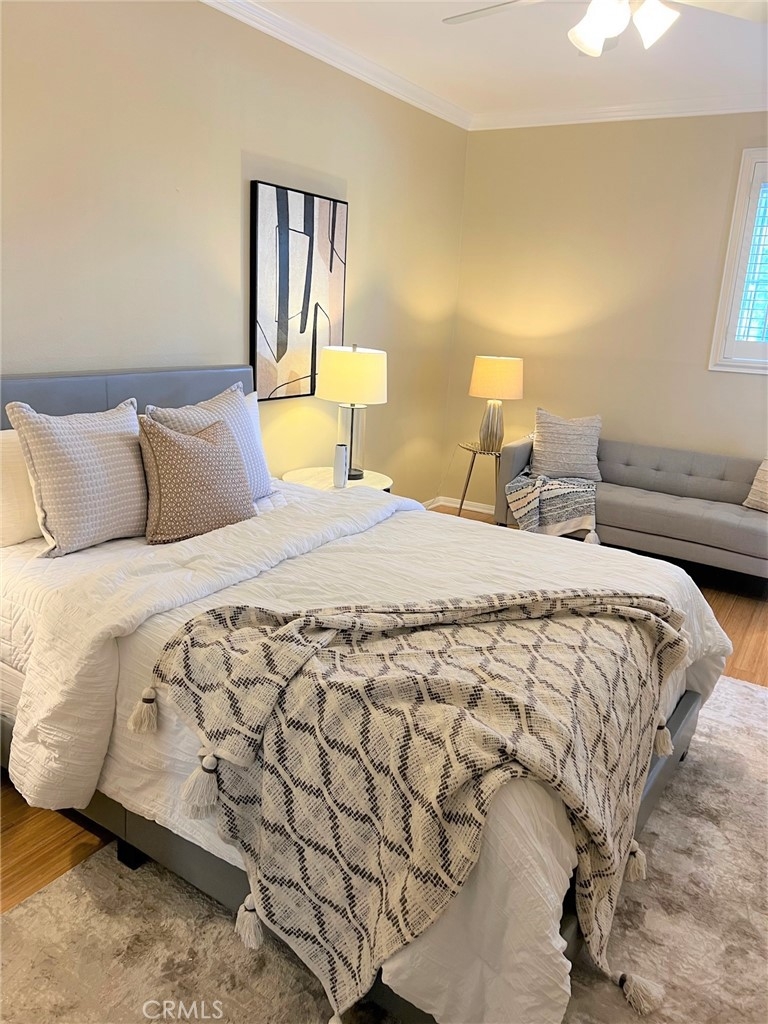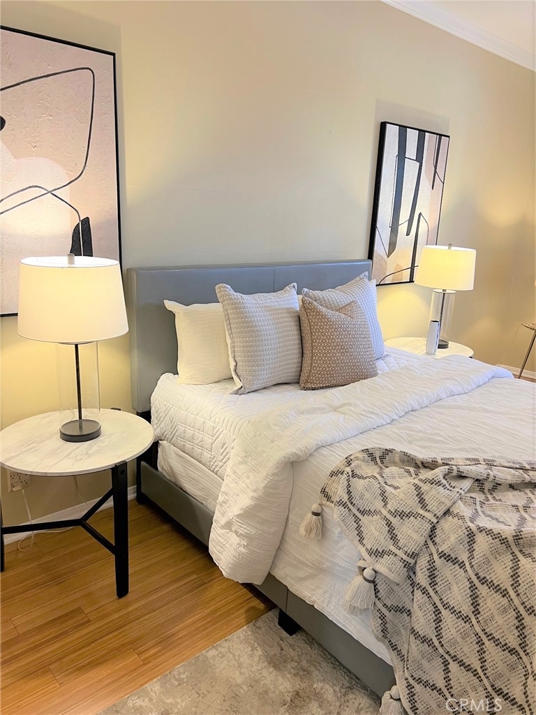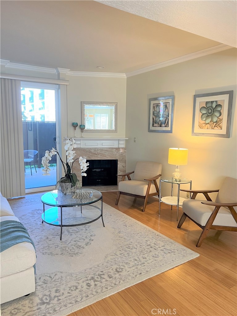 This beautiful 2 bedroom & 2 bath condo will not last! This home is turnkey and a desirable single floor unit on the first floor. It has an updated kitchen with beautiful granite counters, newer cabinets, and recessed/accent lighting. The master bedroom has direct access to the outdoor patio and comes with both a walk-in closet and sliding door closet. The master bath has been updated with Corian counters, air tub with chandelier and a beautiful separate shower. The second bedroom has a ¾ bath adjacent that can also be used as a guest bathroom. This home also comes with beautiful crown molding, bamboo flooring and a laundry closet for a side by side washer and dryer. Added bonus is this unit has 2 reserved parking spaces that are side by side, conveniently located near the elevator and a large storage area in the garage. In 2023, a major comprehensive renovation was completed that included: termite treatment, replacement of sewer and storm lines, repair of wood support posts, major servicing of elevators, and waterproofing and new landscaping of planters throughout the complex. Walking distance to shopping, dining, El Paseo, Pasadena Convention Center and centrally located between Old Town and the Playhouse District. HOA includes water, trash and earthquake insurance and amenities include a spacious clubhouse with kitchen, billiard table, exercise room, pool/spa and more!