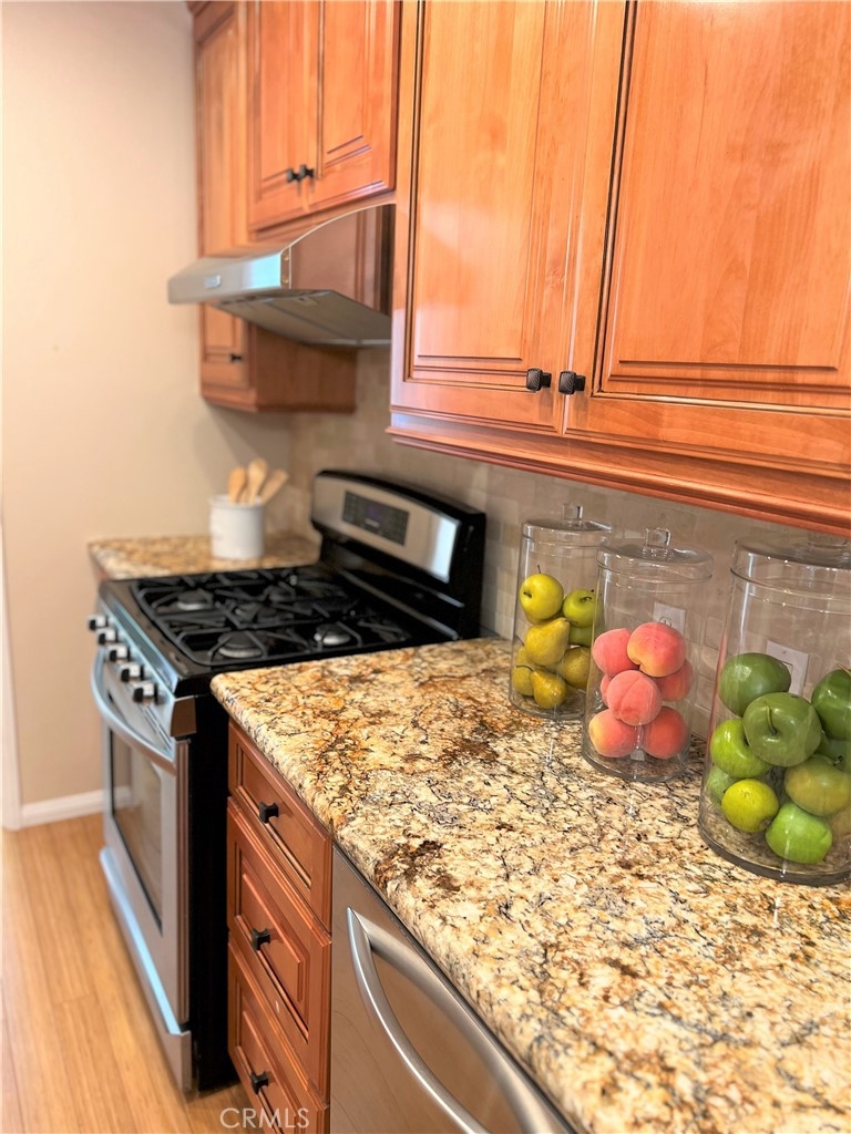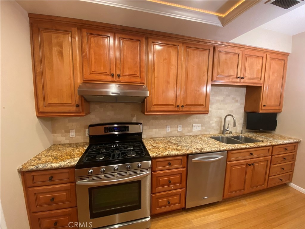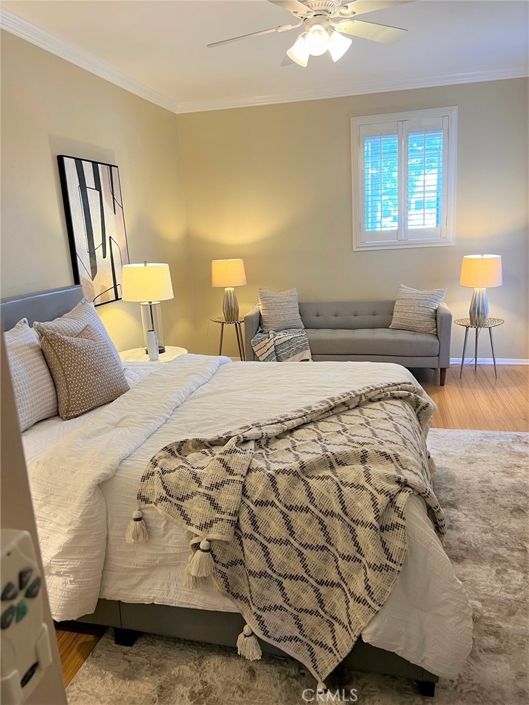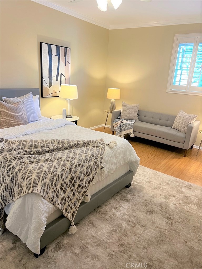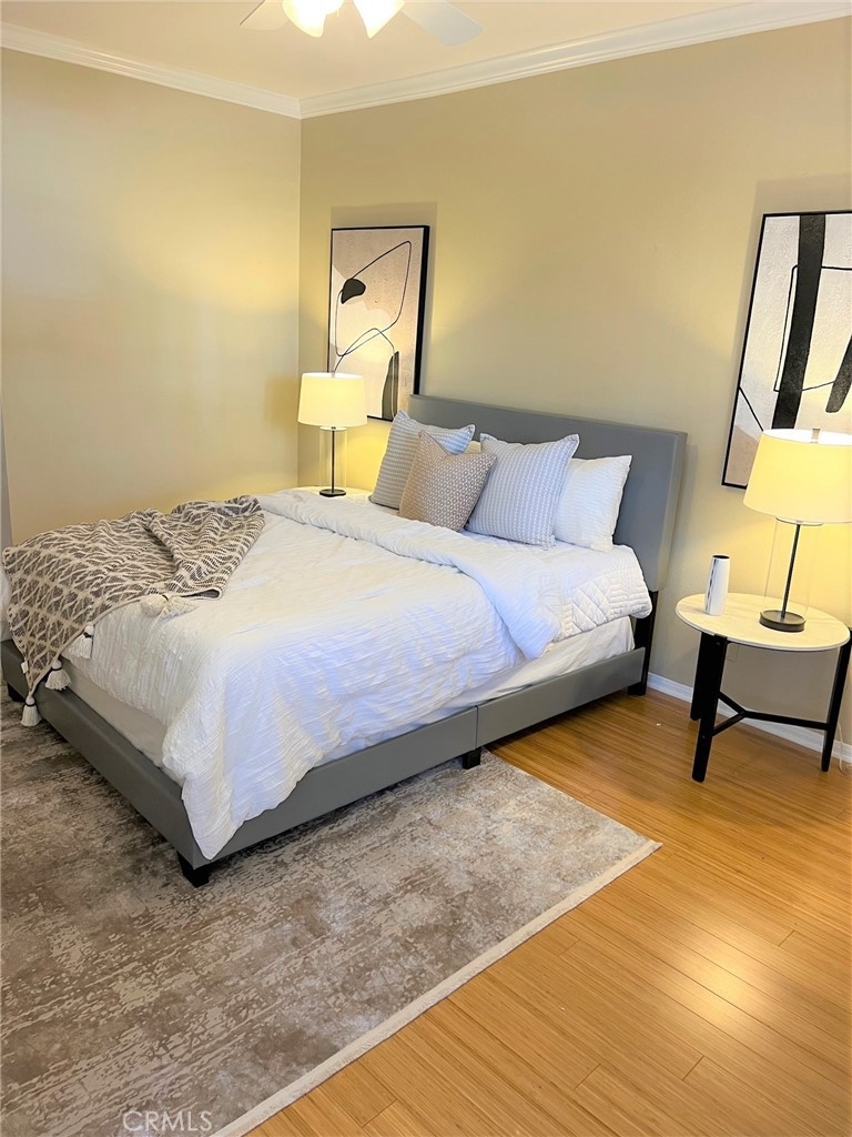 This beautiful 2 bedroom & 2 bath condo will not last! This home is turnkey and a desirable single floor unit on the first floor. It has an updated kitchen with beautiful granite counters, newer cabinets, and recessed/accent lighting. The master bedroom has direct access to the outdoor patio and comes with both a walk-in closet and sliding door closet. The master bath has been updated with Corian counters, air tub with chandelier and a beautiful separate shower. The second bedroom has a ¾ bath adjacent that can also be used as a guest bathroom. This home also comes with beautiful crown molding, bamboo flooring and a laundry closet for a side by side washer and dryer. Added bonus is this unit has 2 reserved parking spaces that are side by side, conveniently located near the elevator and a large storage area in the garage. In 2023, a major comprehensive renovation was completed that included: termite treatment, replacement of sewer and storm lines, repair of wood support posts, major servicing of elevators, and waterproofing and new landscaping of planters throughout the complex. Walking distance to shopping, dining, El Paseo, Pasadena Convention Center and centrally located between Old Town and the Playhouse District. HOA includes water, trash and earthquake insurance and amenities include a spacious clubhouse with kitchen, billiard table, exercise room, pool/spa and more!