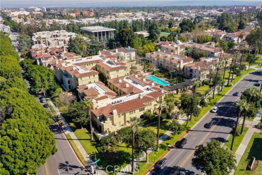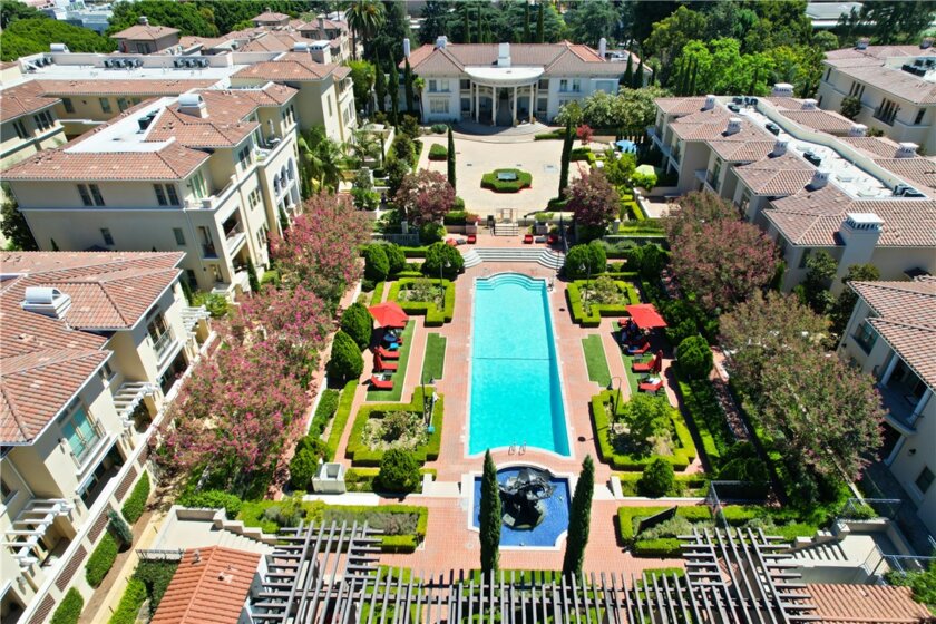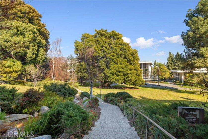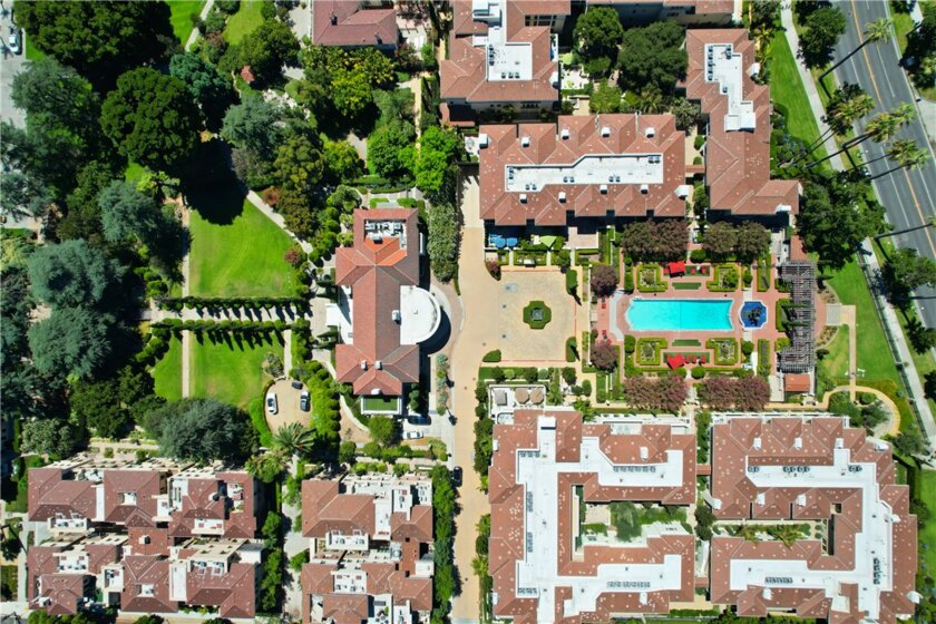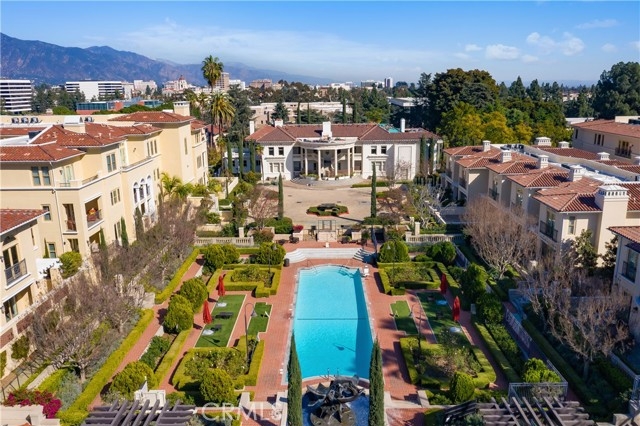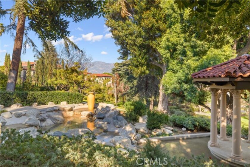 A rare opportunity to own a single-story condominium in one of Pasadena’s most distinguished communities. This beautifully designed home combines open-concept living with exceptional privacy, featuring a spacious great room that extends to a full-length private patio overlooking the Ambassador grounds and its iconic fountain, a truly serene and sophisticated setting. The primary suite enjoys direct access to its own expansive patio, offering skyline and mountain views that fill the space with natural light. Throughout the home, 5-inch hardwood plank flooring, 9–10 ft. ceilings, and motorized blackout and sun shades add both luxury and comfort. The custom-built wall-mounted cabinetry in the great room and the beautifully designed built-in pantry highlight the home’s exceptional craftsmanship and attention to detail. The kitchen features top-of-the-line appliances and an elegant, modern aesthetic suited for both casual and refined entertaining. The guest bedroom and bath are thoughtfully separated from the main suite for enhanced privacy. A private subterranean four-car garage includes custom built-in storage. Residents enjoy exclusive access to a resort-style pool heated year-round, framed by the historic Merritt Mansion, providing a stunning backdrop that captures the timeless elegance of the Ambassador Gardens community.