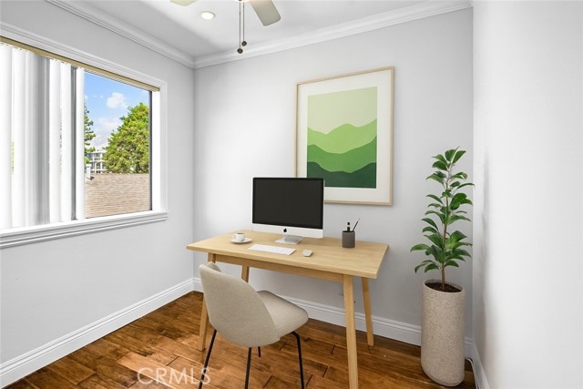 Located in the highly desirable neighborhood adjacent to Pasadena’s prestigious Madison Heights, this beautiful third-floor 1-bedroom, 1-bathroom condo with a bonus room that can serve as an office or potential second bedroom offers modern comfort, functionality, and style. Step inside to a bright, freshly painted interior featuring laminate wood floors that flow through the spacious living area. The inviting living room opens to a private balcony overlooking the peaceful neighborhood — perfect for morning coffee or evening relaxation. The thoughtfully designed floor plan separates the enclosed kitchen from the living area, creating a comfortable and efficient layout. The kitchen comes equipped with a refrigerator, induction range, and convection oven, making it as practical as it is stylish. Down the hall, you’ll find ample storage with a linen cabinet and a double-door closet. The main bedroom enjoys great natural light through a large window with a pleasant neighborhood view, while the bonus room provides a versatile space ideal for a home office, guest room, or creative studio. The full bathroom features a shower and separate tub combination, an oversized single-sink vanity, and ceramic tile flooring for a clean, timeless feel. Residents of this well-maintained building enjoy access to a beautiful courtyard with picnic tables, seating areas, and communal barbecues. Additional amenities include a clubhouse recreation room, gym, sauna, and community laundry facilities. Perfectly situated near shopping, dining, and entertainment, this exceptional condo offers the best of Pasadena living — combining comfort, convenience, and versatility. Don’t miss the opportunity to make this wonderful home yours!