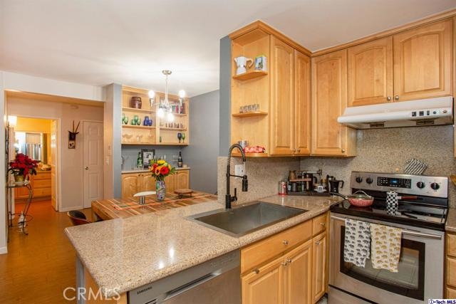 Welcome home to this beautiful 2-bedroom, 2-bath Pasadena END UNIT condo located in the most desirable Los Robles Plaza. Centrally located and blocks away from Old Town Pasadena, The Paseo, The Metro Gold Line and so much more. This unit offers plenty of natural light with an open floor concept that includes a living/dining area and a generous size balcony framing the lush greenery of the plants and trees. Featuring laminate flooring throughout, recessed lighting and a gourmet kitchen that serves as the heart of the home equipped with stainless steel appliances, a farmhouse sink and plenty of cabinet space. The two large bedroom suites offer ample closet space and bathroom vanities with granite countertops. As part of the Los Robles Plaza, the amenities feature a community swimming pool, spa, gym, a recreation room and much more! Also offering a two-car tandem parking in the easily accessed subterranean gated garage. This unit is perfect for anyone looking to live in a great location that blends art, entertainment and so much to do in all of Pasadena's well-known places. Don't miss out!