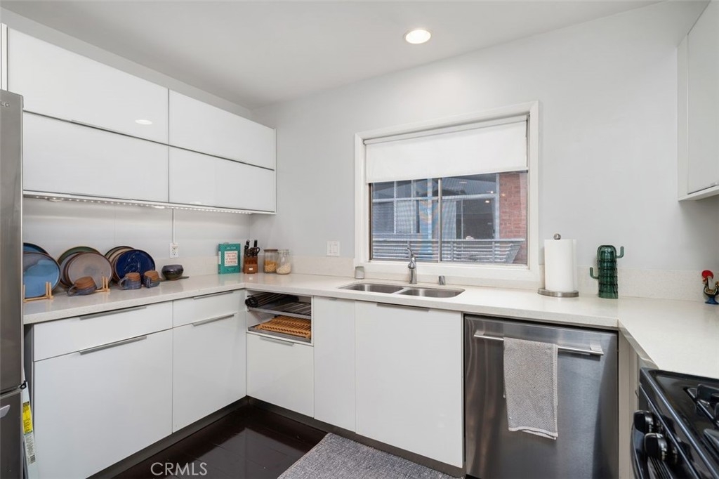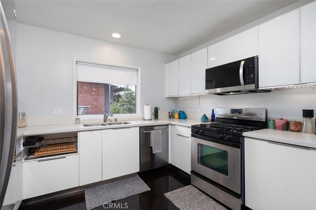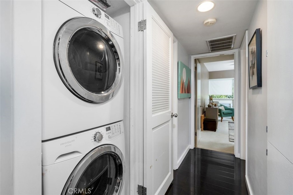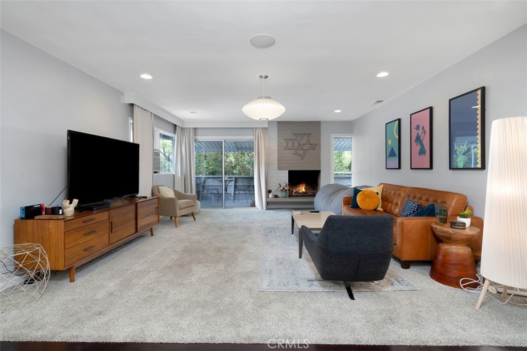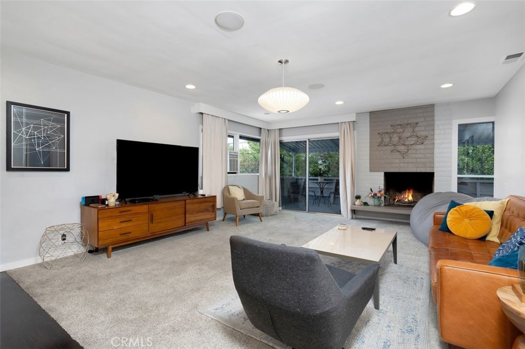 Welcome to this beautifully designed mid-century modern 2-bedroom, 2-bathroom condo offering 1,237 sq.ft. of comfortable and stylish living. Step inside to discover a bright and open layout that seamlessly connects the living, dining, and kitchen areas—perfect for both everyday living and entertaining. The living room features a striking fireplace, creating a warm and inviting centerpiece. The kitchen boasts stainless steel appliances, generous countertop space, and a functional design ideal for any home chef. Recessed lighting and engineered hardwood floors add a touch of modern elegance throughout. Both bedrooms are impressively large, with ample natural light. The primary bedroom features a private en-suite bath and large closet space. One of the bathrooms has been recently updated with tasteful finishes and a clean, modern look. Step outside to your expansive balcony and enjoy daytime panoramic mountain views to the north and evening sparkling city views to the south. Additional features include an in-unit hallway stackable washer and dryer, modern light fixtures and ceiling fans, newer insulation, and two covered parking spaces with extra storage. The HOA includes ALL utilities. Yes, you read that right. What a value! Located in the highly desirable Lower Hastings Ranch area of Pasadena, this spacious and charming condo is minutes away from Whole Foods, Trader Joe's, Starbucks, local shopping, the Metro Line, and the 210 freeway. Enjoy proximity to schools, farmers markets, dog parks, Rose Parade festivities, hiking trails, and the Santa Anita Racetrack. Don’t miss the opportunity to make this exceptional condo yours!