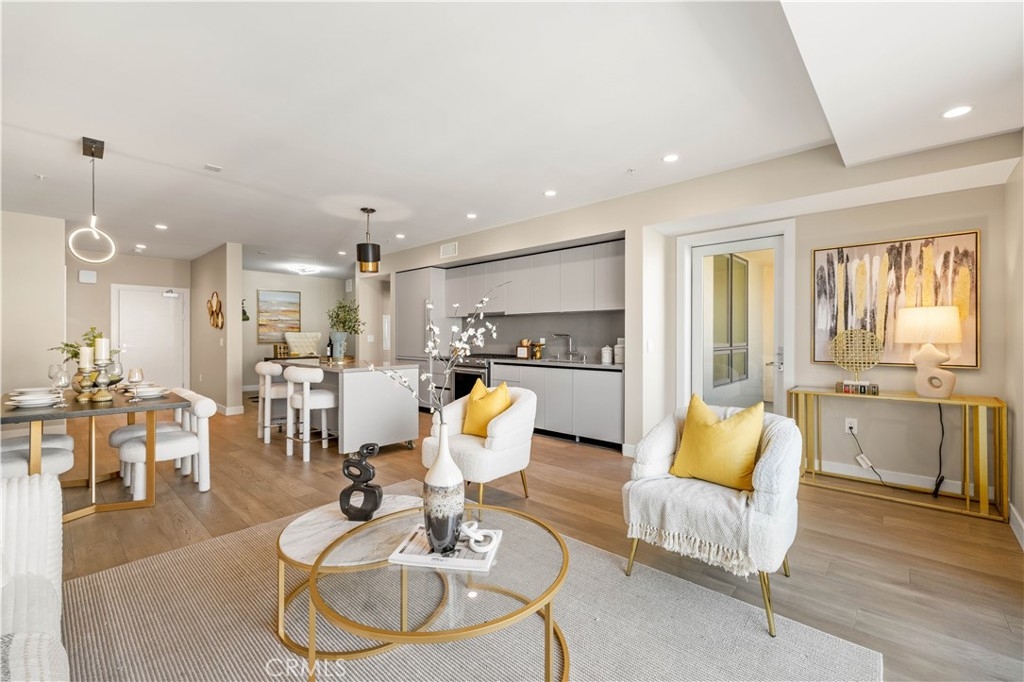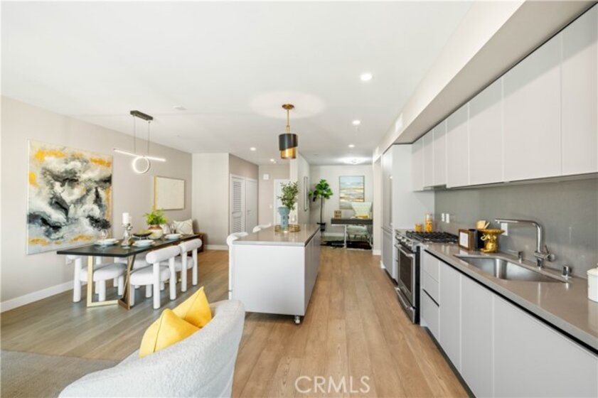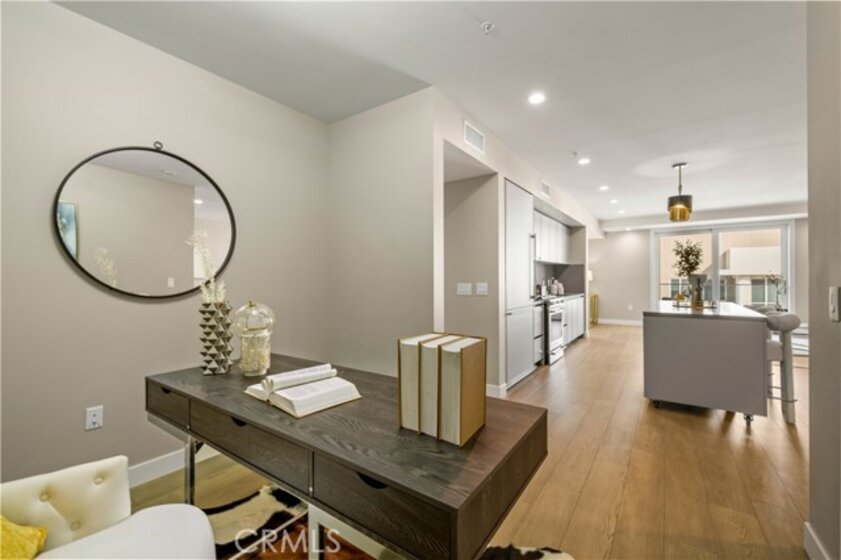 Located in a newly built high-rise, this south-facing one-bedroom, one-bathroom plus den condominium offers secured gated access, two assigned parking spaces, and a well-managed HOA with water, gas, and trash included. The open-concept floor plan is enhanced by floor-to-ceiling windows and a pop-out balcony that captures sweeping views of the San Gabriel Mountains and city skyline, providing abundant natural light throughout. The modern kitchen features high-end stainless steel appliances, quartz countertops, and sleek cabinetry, ideal for both everyday living and entertaining. The spacious bedroom offers a peaceful retreat with a generous closet, while the elegant bathroom showcases premium finishes and a spa-like design. Step onto the private approximately 88 sq ft balcony to enjoy panoramic views and tranquil surroundings. Community amenities include secure FOB and ButterflyMX access, an Amazon Hub locker in the main lobby, and gated underground parking. Ideally situated within walking distance to dining, shopping, Equinox, and cultural attractions, this residence offers an exceptional blend of urban convenience and scenic beauty, with a rare opportunity to enjoy iconic city views—including the Rose Parade—from the comfort of home.