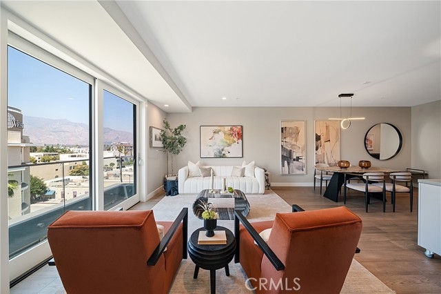 Major price improvements--A clear gain for buyers! Gated, secured gates, two parking spaces, decent HOA fee, water, gas, trash are included. Discover unparalleled luxury in this coveted south-facing one bed, one bath plus den condominium, located in this newly built high-rise. Floor-to-ceiling pop-out balconies showcase sweeping views of the San Gabriel Mountains and city skyline, filling the open-concept living space with abundant natural light. The modern kitchen features high-end stainless steel appliances, quartz countertops, and sleek cabinetry—perfect for effortless entertaining. The serene bedroom offers a tranquil retreat with generous closet. The elegant bath boasts premium finishes and a spa-like ambiance. Step onto your private 88 SF balcony to enjoy the ever-changing skyline and peaceful surroundings. This exclusive residence boasts top-tier amenities, including secure FOB and ButterflyMX access, an Amazon Hub locker in the main lobby, and gated underground parking for convenience and peace of mind. This prime location places you within steps of world-class dining, upscale shopping, high-end chain gym Equinox and cultural attractions. Experience the perfect balance of urban sophistication and natural beauty in this exceptional condo—where luxury meets lifestyle. Don’t miss this rare opportunity to own one of the best views in the building! Enjoy the Rose Parade from the room, and terrace, and the balcony!