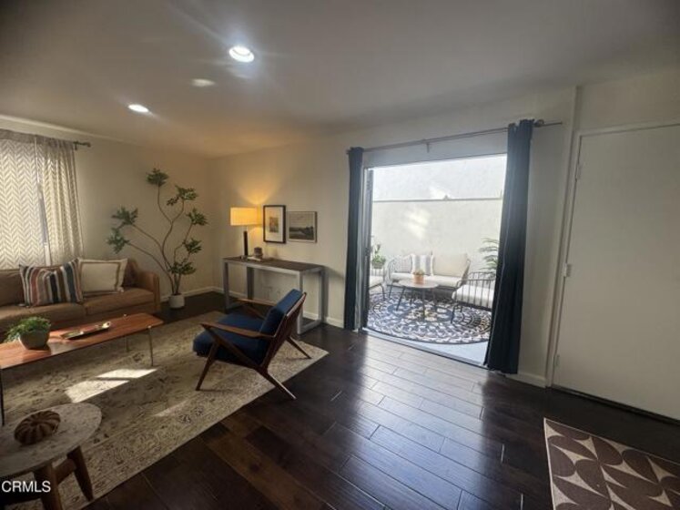 Tucked quietly at the back of the building, this beautifully upgraded townhouse offers direct garage access and an unbeatable location near Paseo Colorado, the Metro Gold Line, and Old Town Pasadena. The stylish kitchen shines with stainless steel appliances, refinished cabinets, and a chic tiled backsplash. Upstairs, both bedrooms feature dramatic vaulted ceilings, ample closet space, and sleek modern doors. Enjoy the convenience of an extra-spacious garage with abundant storage and a separate laundry room. Fresh paint, central A/C, gorgeous hardwood floors, a powder room, recessed lighting, a wet bar, peaceful mountain views, and a private patio complete the home. A townhome of this quality in such a prime location is an exceptional find.