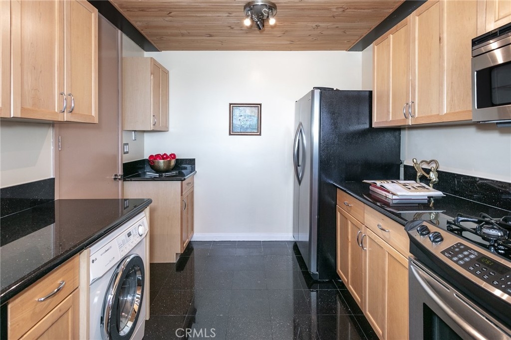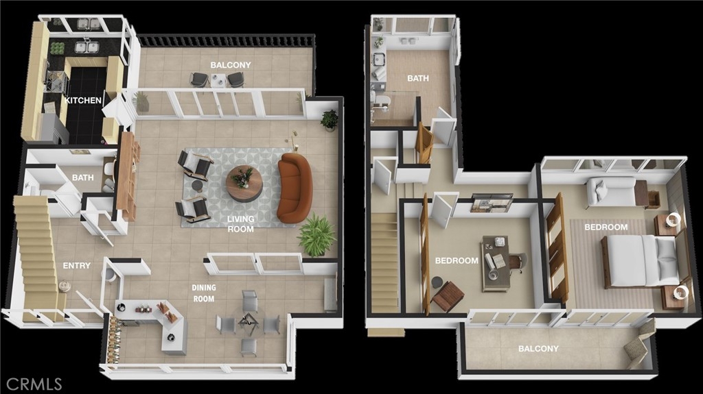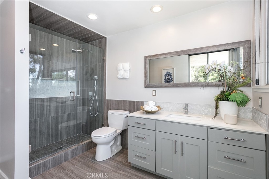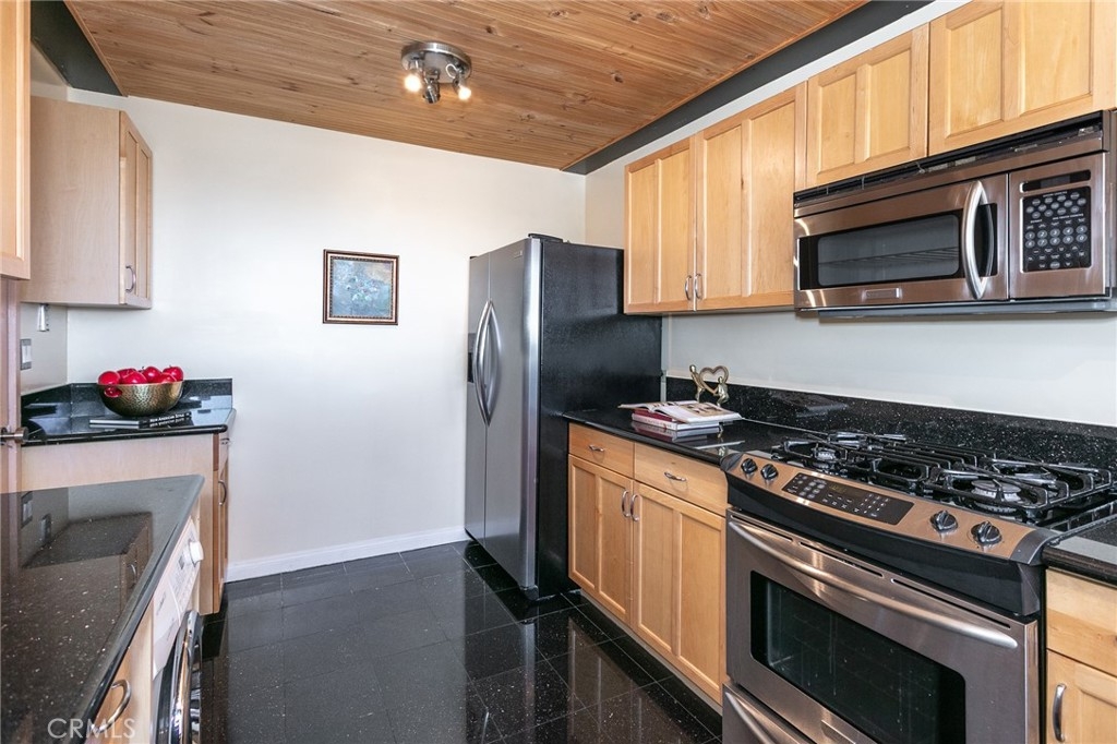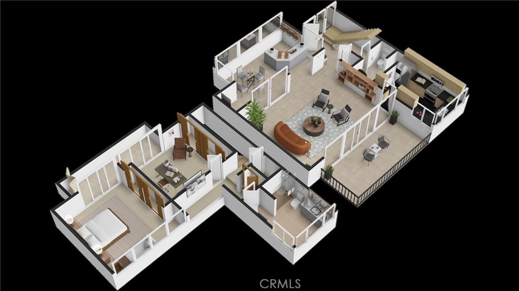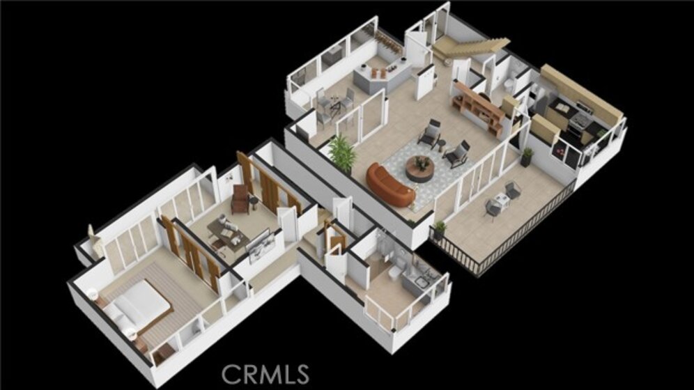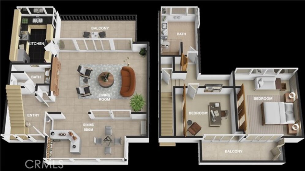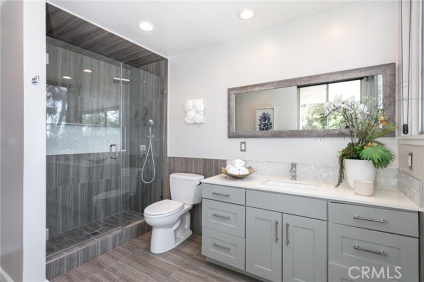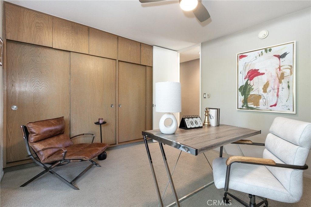 This townhome is located in the desirable Lower Hastings Ranch neighborhood of Pasadena. Close to dining, shopping, parks, golf courses, Old Town Pasadena, the Rose Bowl, PCC, Caltech, the 210 Freeway, and Metro A Line. Situated in a charming 10-unit community with mature landscaping and a central courtyard pool, this home offers a peaceful, well-maintained setting. Interior highlights include soaring vaulted ceilings, wood ceilings, concrete block accent walls, central A/C, recessed lighting, integrated laundry, and tile and carpet flooring. Expansive windows bring in abundant natural light, complemented by over 200 sq ft of combined balcony space. The living room features double-height ceilings and floor-to-ceiling windows, with sliding glass doors opening to a large balcony with city views. The dining area includes a built-in bar, ideal for entertaining. The kitchen offers granite countertops, stainless steel appliances, and a functional layout with integrated laundry. Upstairs features two bedrooms and a full bathroom. Both bedrooms feature ceiling fans, along with carpet flooring and sliding wood closets. The primary bedroom overlooks the living area below, while the second bedroom offers greenery views and access to a shared balcony. The full bathroom is updated with a modern vanity, quartz countertop, and a tile surround frameless glass shower room. Don’t miss this opportunity to own a light-filled home with architectural character and a prime location.