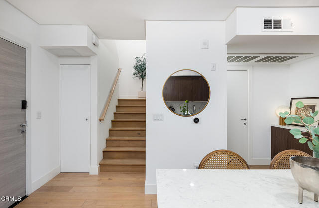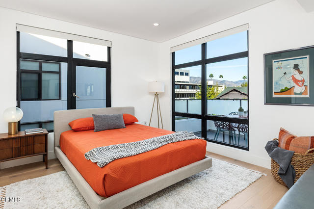 Welcome home to The Del Mar in the heart of Pasadena. This 1,380 square foot top-floor luxury condo boasts two bedrooms, two full bathrooms and two balconies. This unit spans the third and fourth floors, providing an ideal urban floor plan. Upon entering, find a modern, sleek kitchen to your right with a high-end Sub-Zero refrigerator, Wolf range, quartz countertops and designer cabinetry. Engineered oak hardwood floors sooth underfoot as you move past the kitchen into your dining area and loft-like living space. A large picture window captures your attention at the end of the room--drawing you to the architectural views of the church across the street. As you approach, there's a glass door to the lower-level balcony. Step out to discover breathtaking views of the San Gabriel mountains and nearby cityscape. Envision summer dining al fresco or enjoy morning coffee with the rising eastern sun--and don't forget cocktails at dusk. Come back inside to find a main-level bedroom with impressive views and an adjoining full bathroom with additional door to connect back to the main space. Also discover a small alcove with more cabinetry and quartz countertop to make the perfect hip bar. Opposite find a door concealing your in-unit stackable laundry equipped with a Samsung washer/dryer. Doubling back to the entry there is a closet for large storage items and staircase leading to the upper level owner's suite. At the top of a light-filled upper landing, turn to the left to enter a spacious primary bedroom with large window and glass door to your private upper balcony with panoramic mountain views. It's the perfect place to chill and take in the evening city lights or star gaze. Come back inside to find a spacious en suite bathroom with separate shower and tub and double vanity--all with high-end fixtures. Through the bathroom is a massive closet--decked out with a custom Avera storage system from The Container Store.Entertaining doesn't end in your condo. The building's amenities include a community pool, fire pit, barbecue and picnic area. Also enjoy the fitness center, dog park, lounge and meeting room. The Del Mar is a gated community. This unit comes with two side-by-side parking spaces in the underground community parking garage. With such well-appointed finishes and features, this condo and complex doesn't disappoint--perfect for the modern enthusiast who loves sleek design, the urban landscape, mountain views and California living.