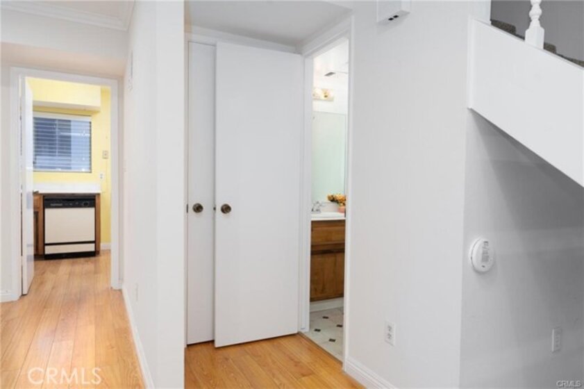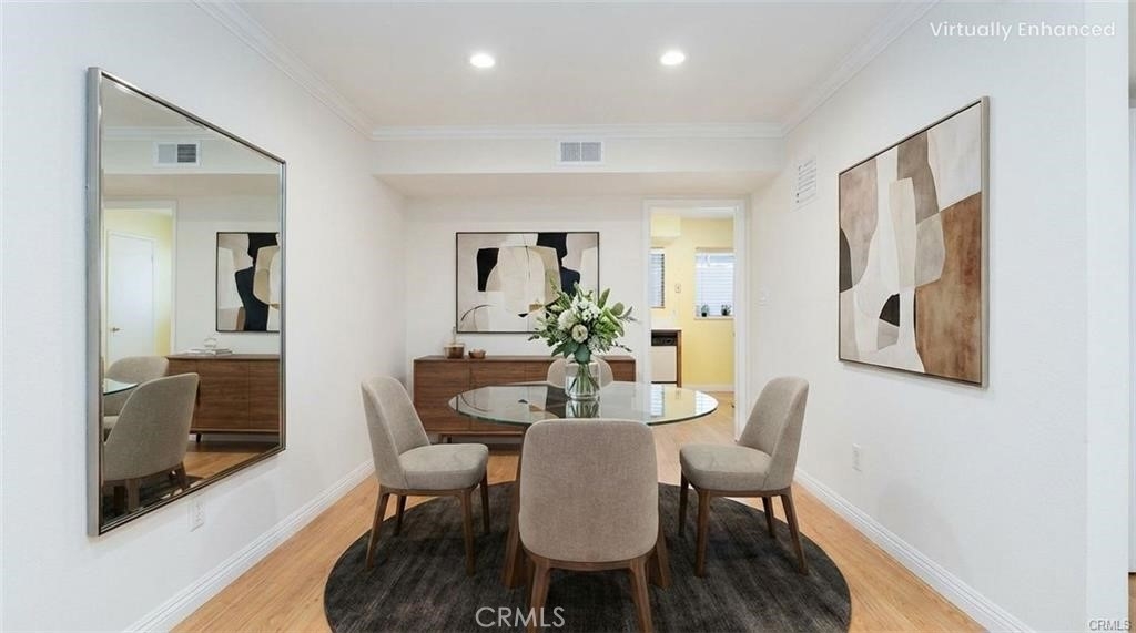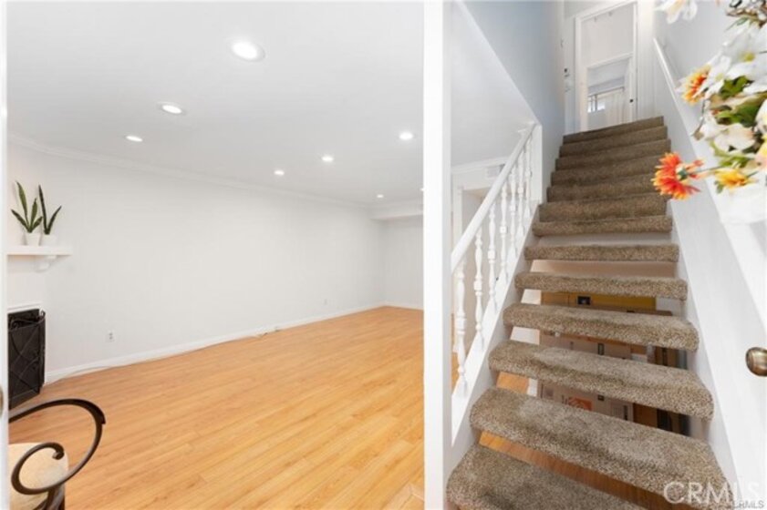 Light and bright 2 bedroom, 2 bath townhouse located in a quiet private gated community, with only 8 units. The inviting living room with wood floors, fireplace, and recessed lighting is open to the dining area leading to a step saver kitchen with breakfast area and lovely garden window. Ample cabinets, gas stove, microwave, refrigerator, and dishwasher ready for the chef in you. Washer and dryer are located in their recessed area in the kitchen. A conviently located half bath completes the downstairs. Upstairs are two bedrooms with ample closet space. Double doors, crown molding, and vaulted ceiling enhance the primary bedroom. Laminate wood flooring downstairs, central heat and air, crown molding, and wide slat blinds throughout gives this home the upscale feeling it deserves. Very low HOA makes this home a rare opportunity. Large courtyard area with plenty of room to gather for family barbecues and al fresco dining. One car gated parking and large private storage room are useful and practical. New roof and fence installed 2025. Conviently located between Lake and Allen Gold line stops and easy freeway access, also PCC, Cal Tech, and Art Center are close by along with Old town Pasadena shops and Rose Bowl just to name a few highlights.