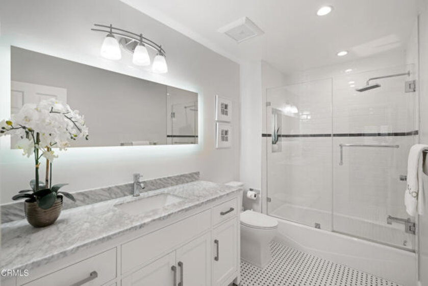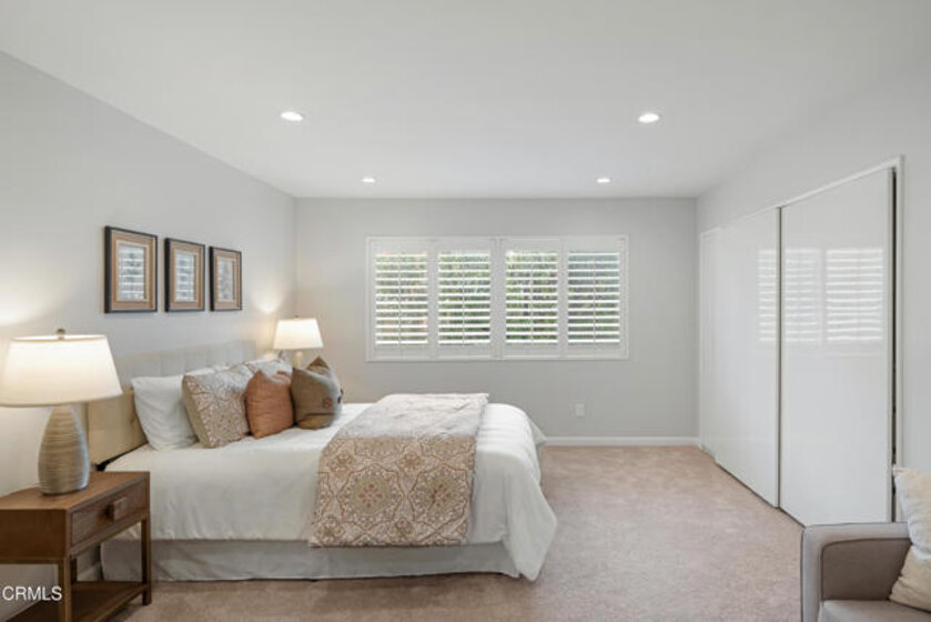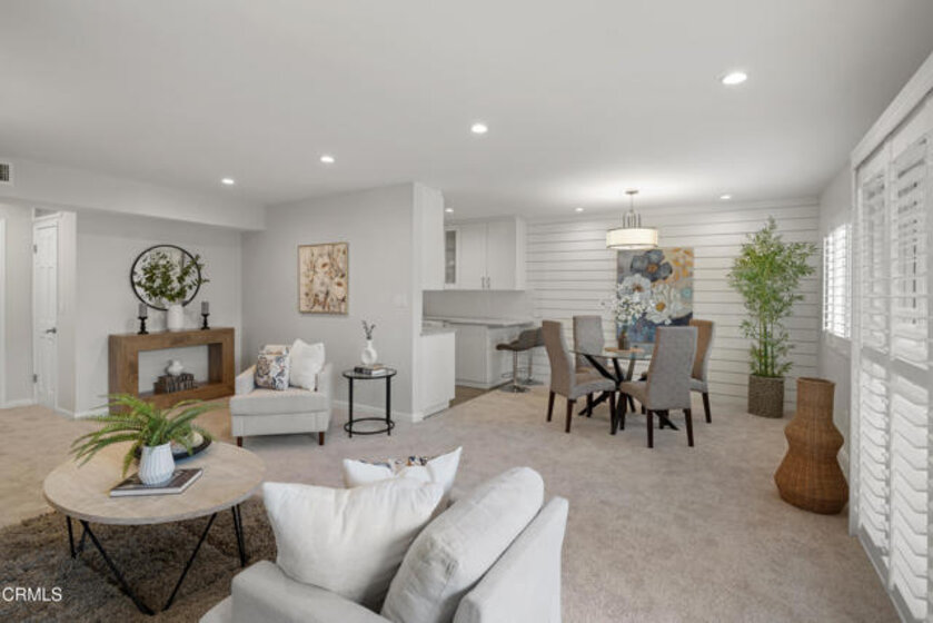 Welcome to Casa Serena, where comfort, style, and Pasadena living come together seamlessly. Step inside this beautifully updated residence and be greeted by an open, light-filled living space featuring recessed lighting and plush new carpeting. A large sliding glass door opens to an expansive private balcony, perfect for morning coffee or evening relaxation, enhanced by elegant wood-louvered shutters that add both character and privacy. The living area flows effortlessly into the dining space, highlighted by a stylish shiplap accent wall that creates a warm and inviting focal point. Just beyond, the thoughtfully remodeled kitchen blends form and function with sleek quartz countertops, shaker-style cabinetry, recessed lighting, and a furniture-front dishwasher designed to disappear into the cabinetry for a clean, modern look. An electric cooktop, range hood, built-in oven, and a generous walk-in pantry with custom shelving complete this well-appointed space. Conveniently located off the entry is a chic guest powder room featuring penny tile flooring, an LED-lit mirror, and additional storage. A hallway closet area with drawers, shelving, and countertop space adds exceptional practicality. Retreat to the expansive bedroom suite, offering new carpeting, recessed lighting, and a custom closet with built-in organizers. The updated ensuite bathroom feels spa-inspired with basket-weave tile flooring, a tub and shower combination enclosed by custom glass doors, a rain showerhead, recessed lighting, and an oversized vanity topped with stone. Casa Serena residents enjoy access to a gated pool and spa, a charming courtyard, and a spacious community laundry room with private storage lockers. Set within a secure building and ideally located near the South Lake District, Old Town Pasadena, Caltech, with convenient access to greater Los Angeles, this turnkey home offers the perfect balance of sophistication, comfort, and location. Experience elevated Pasadena living at Casa Serena.