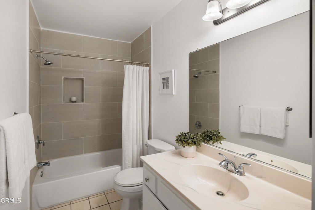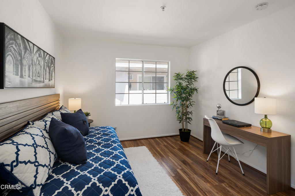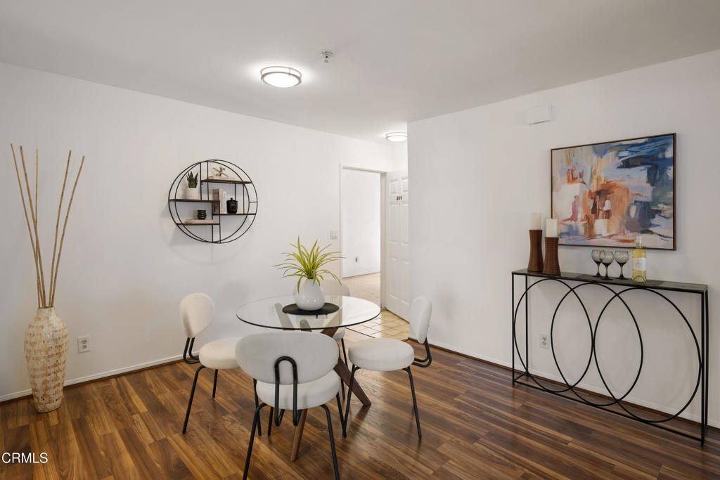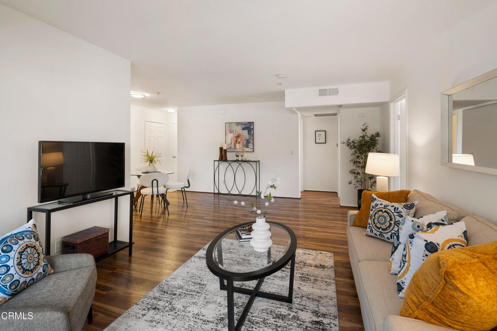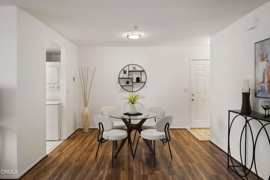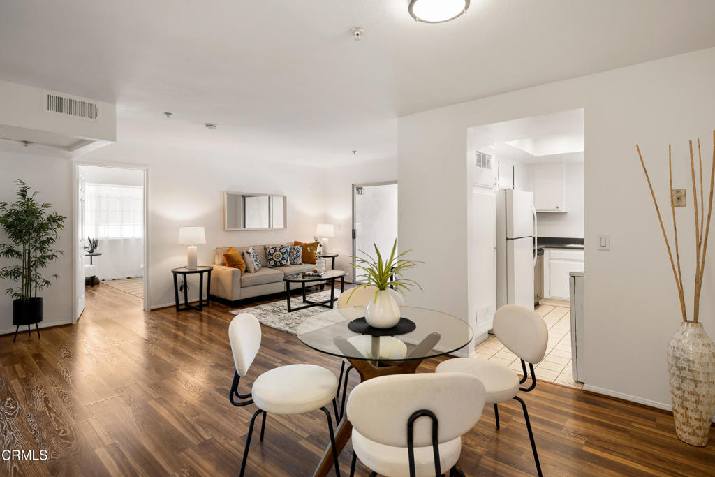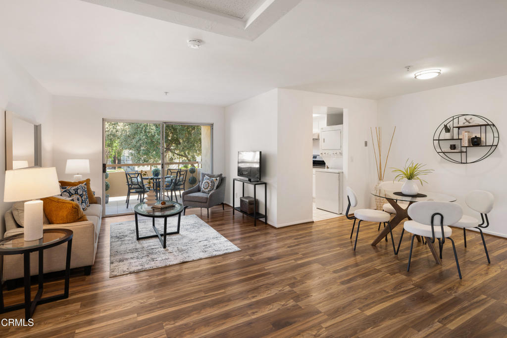 Located in a prime Pasadena location, this inviting upstairs corner unit offers comfort, style, and convenience. As you enter, you're welcomed by wood-like laminate flooring and LED ceiling lights that create a warm, modern feel that brighten the open-concept living and dining areas. A sliding glass door off the living room opens to a spacious balcony--ideal for relaxing or enjoying al fresco meals in the Southern California sunshine. The kitchen features tile flooring, a tray ceiling with recessed lighting, a 4-burner gas range with hood, dishwasher, refrigerator, and a stackable washer and dryer for added convenience. The primary suite offers a generously sized closet and a private ensuite bathroom with tile flooring, a large single-sink vanity, linen storage, and a spa-style tub/shower combination. The second bedroom also offers great space and includes a walk-in closet. A second full bathroom features tile flooring, a single-sink vanity, and a beautifully updated shower/tub combination with custom tilework up to the ceiling. Additional features include central air and heat controlled by a Nest thermostat. Ideally located near the Metro Rail Gold Line, shopping, dining, and entertainment options, this move-in-ready unit offers the best of Pasadena living!