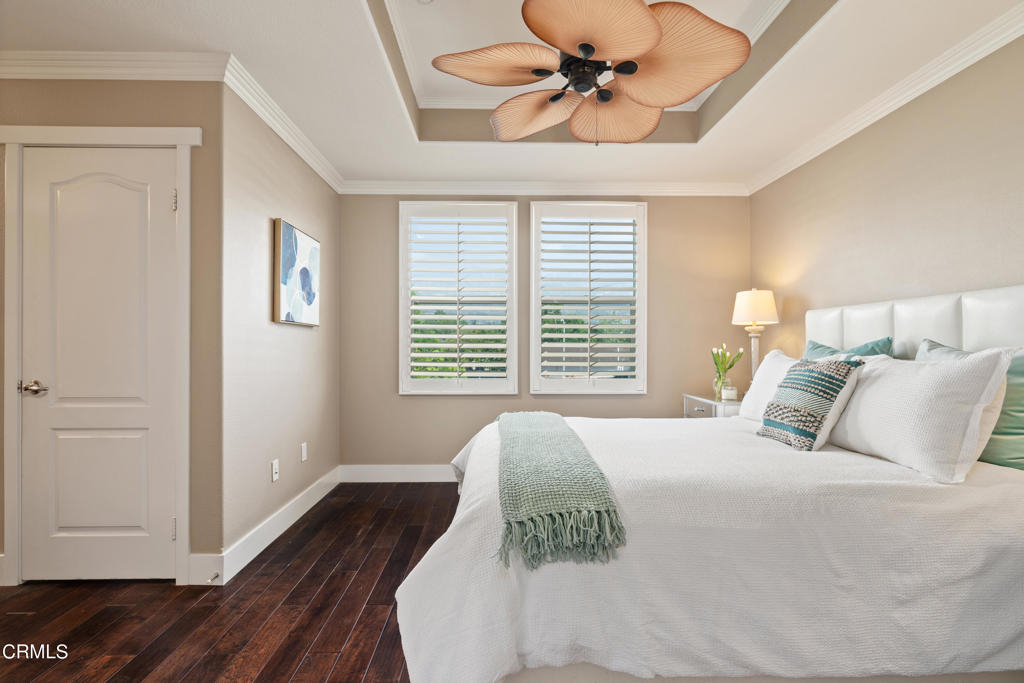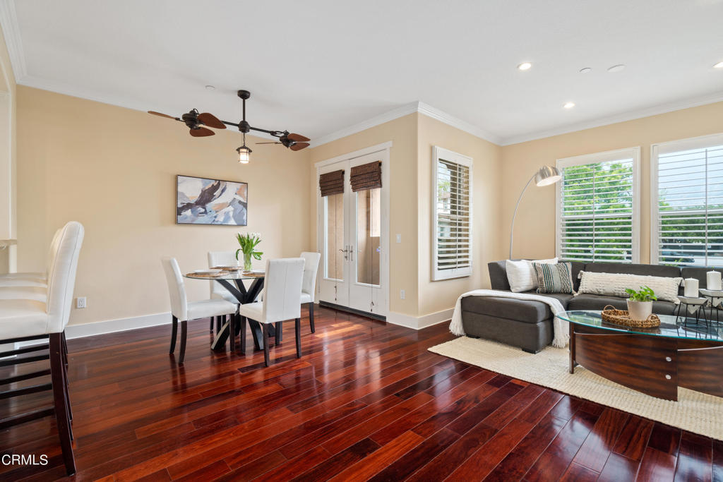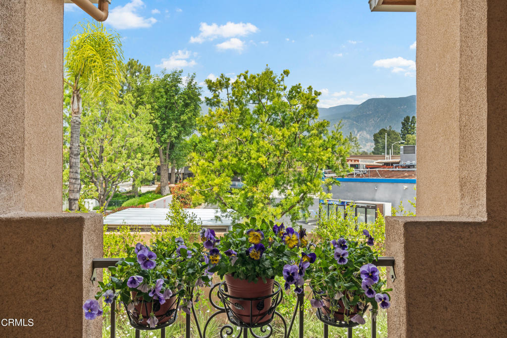 Exquisite Mediterranean-style townhouse located in the prestigious Artisan Square of Pasadena. The interior of this stylish, freshly painted home features a living room, kitchen, dining area, in- suite laundry, balcony, 2 bedroom suites, and 2 1/2 bathrooms. Features include a two- car attached garage with direct access, guest parking, central AC, recessed lighting, ceiling fans, plantation shutters, elegant crown molding, pre-wired for CAT5 and an alarm system. The light-filled living room is equipped with a cozy fireplace and engineered hardwood flooring throughout. The adjacent dining room is perfect for enjoying meals with family and friends and has direct access to an enclosed private balcony that looks out on beautiful mountain views. The functional kitchen is well appointed with white cabinetry, granite countertops, breakfast bar, and professional grade Viking stainless steel appliances. The top level is comprised of 2 ensuites with engineered hardwood floors. The bright and airy primary suite has a large walk-in closet and a unique tray ceiling with a ceiling fan, vanity with marble countertops and a framed-glass shower. The entry space on the ground level can be used as an office or study area. Conveniently located near shopping and restaurants, retail and grocery stores, parks, concerts, and sporting events at the Rose Bowl, golf courses and museums, along with scenic hiking trails and public transportation. Easy access to the 210 freeway, close to Hastings Ranch shopping and Old Town Pasadena. Built in 2005 featuring a beautifully manicured courtyard with fountains surrounded by lush landscaping, charming arched walkways and a clay tiled roof. This complex received a Pasadena beautification award in 2008. The stylish home was exquisitely designed with an atmosphere of elegance and relaxation as it captures everything that urban lifestyle has to offer.
