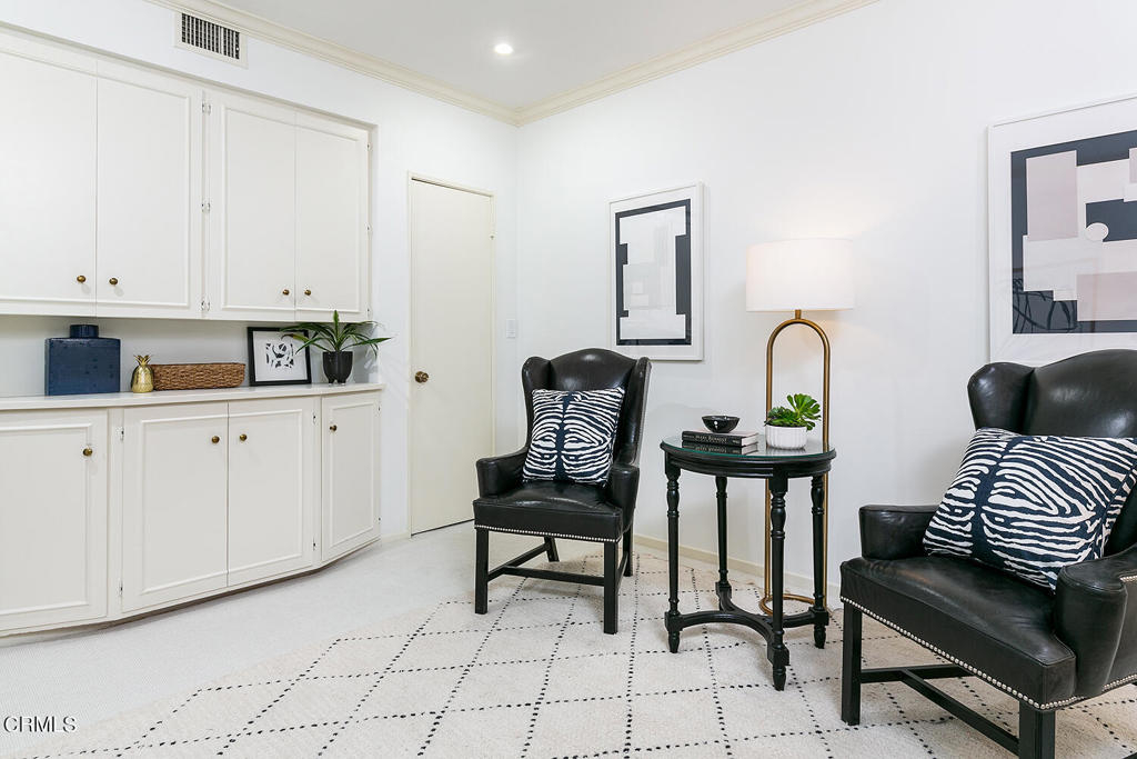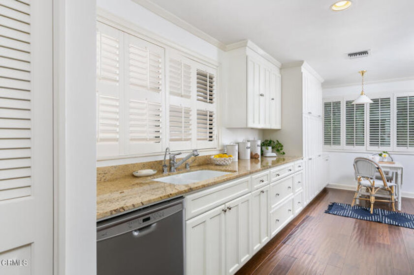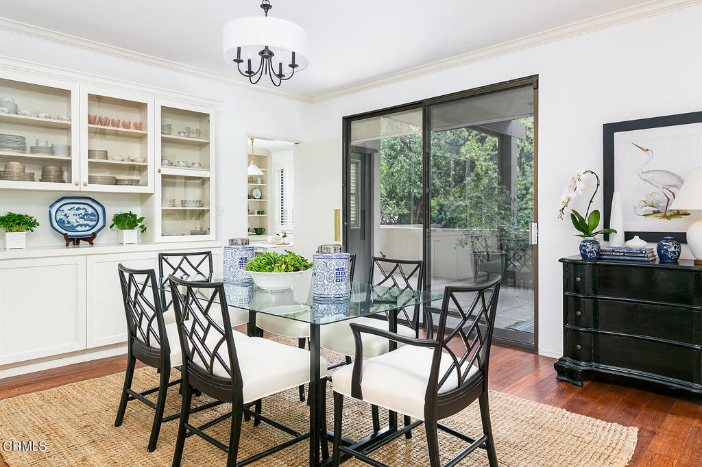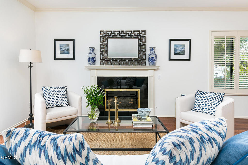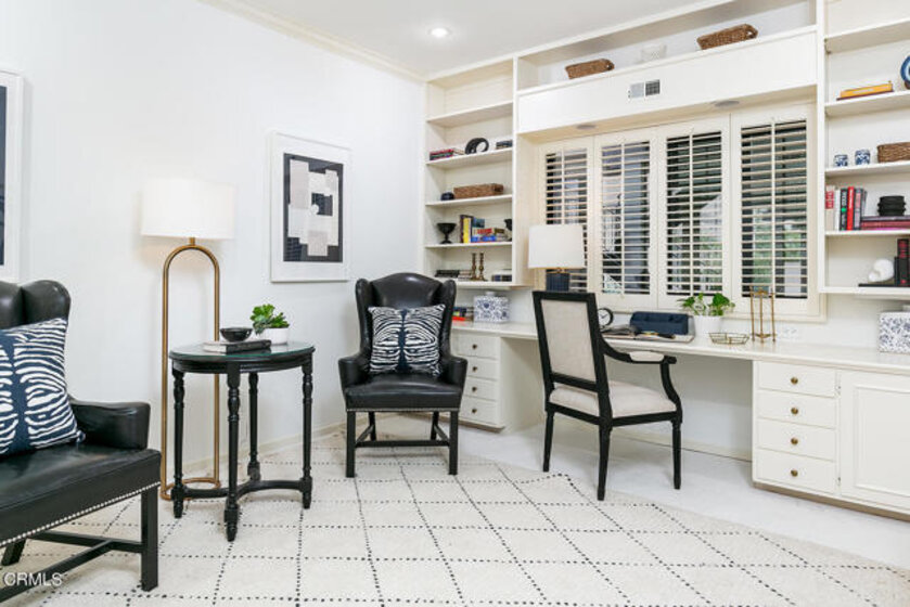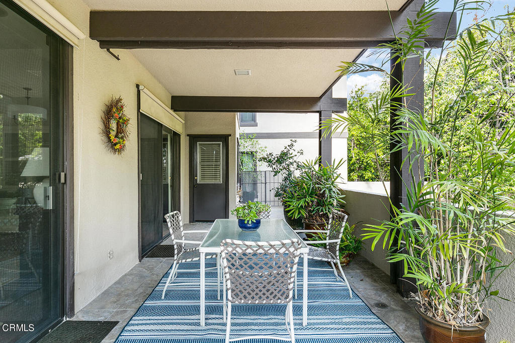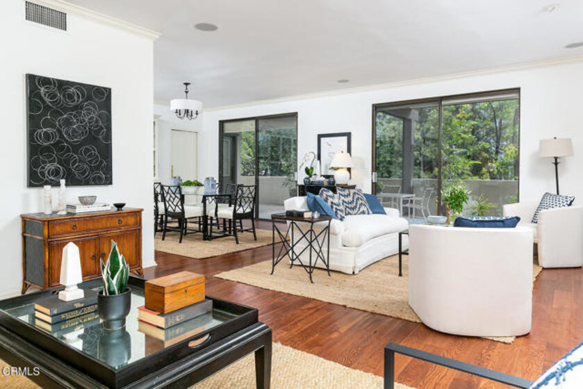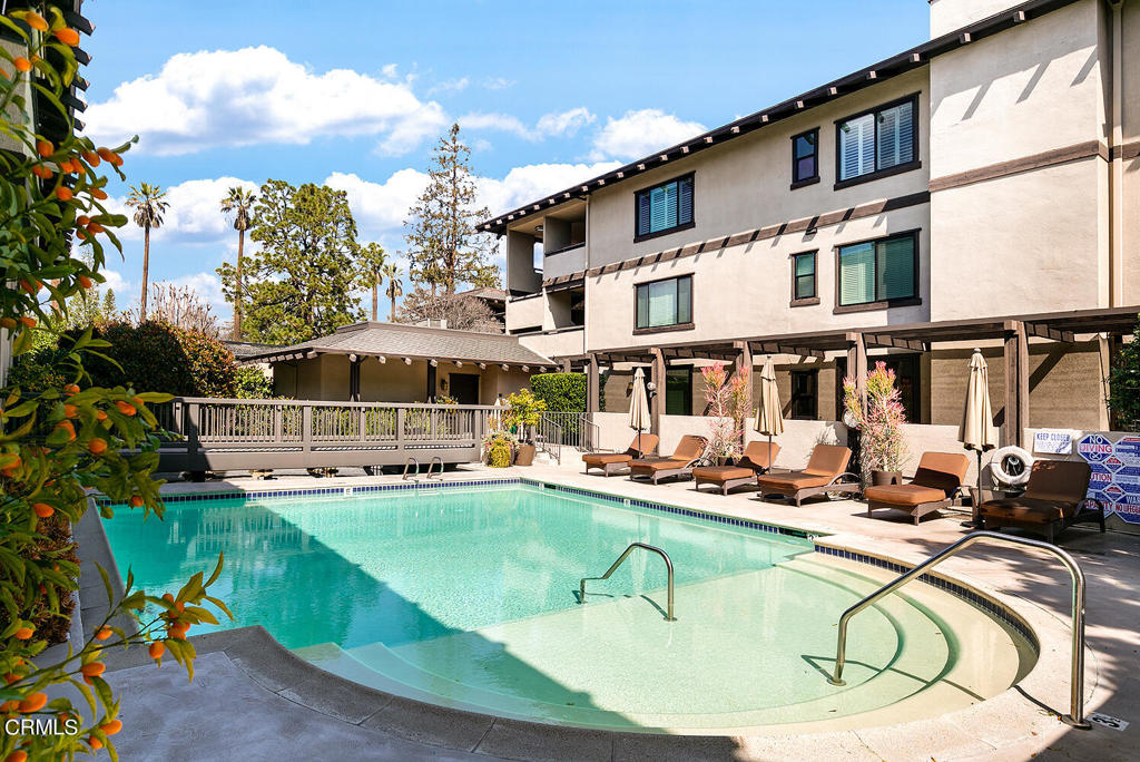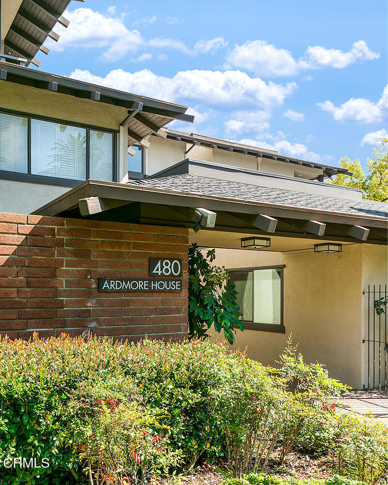 Don't miss seeing this upscale, yet relaxed ground floor, one story, corner unit in the coveted Ardmore House. Located on what was once nicknamed Millionaire's Row, this home exudes pride of ownership, with elegance and sophistication throughout. Freshly painted, with new light fixtures and new carpet, this home is truly move-in ready. Boasting a large covered patio, accessible from both the dining and living rooms, as well as the kitchen, this home allows for wonderful Southern California indoor/outdoor living and dining. The kitchen is spacious and updated, with a washer and dryer conveniently located inside, as well as a cozy spot for in-kitchen dining, with exceptional storage. The dining room allows for all of your collectibles to be easily displayed in the gorgeous custom built-in, with both cabinets and drawers. A bar adds further value and convenience for entertaining, with pretty exterior views through the doors to the balcony. The spacious living room features a large fireplace, custom window shutters, as well as an additional seating area, just perfect for a reading nook. The front bedroom is currently being utilized as a home office, and offers substantial built-in storage as well as a desk and full work station with additional space. The primary bedroom suite is a welcome respite and retreat, with light galore, custom shutters, new carpet, as well as an area for relaxing with plenty of space for additional furnishings. The primary bath is elegantly appointed, with an oversized shower, marble countertop, dual sinks and convenient linen closet and storage. The walk in closet is large and custom built. The guest bedroom and/or second primary bedroom is also ensuite and has fresh paint, new carpet and a new light fixture. The unit comes with two side by side parking spaces, and a large storage closet in the garage. The Ardmore House is one of the most coveted complexes on South Orange Grove Blvd. and also one of the few buildings with an on-site manager. There is a great sense of community, which can be found at the pool or a visit to the Valley Hunt Club, located just across the street. This home is light and bright with a flowing floor plan, ready for its new owner! Truly move-in ready, spotless and welcoming! Come visit and see for yourself.