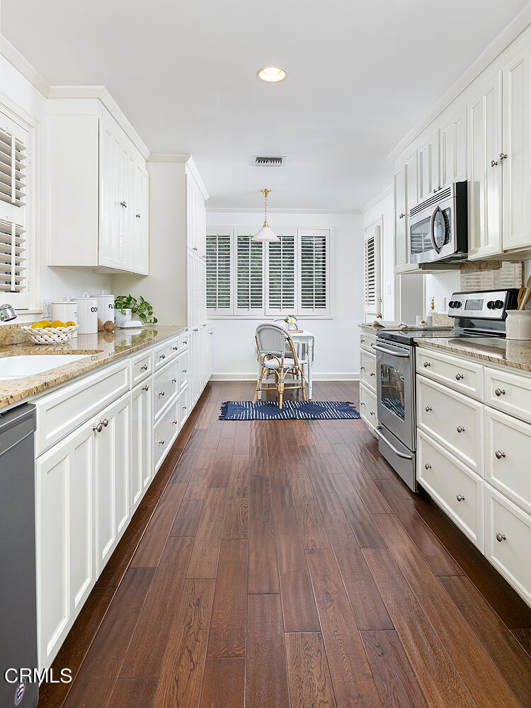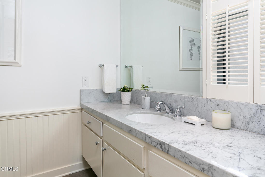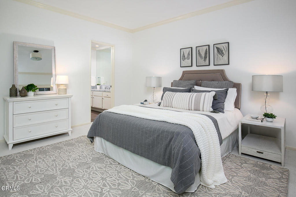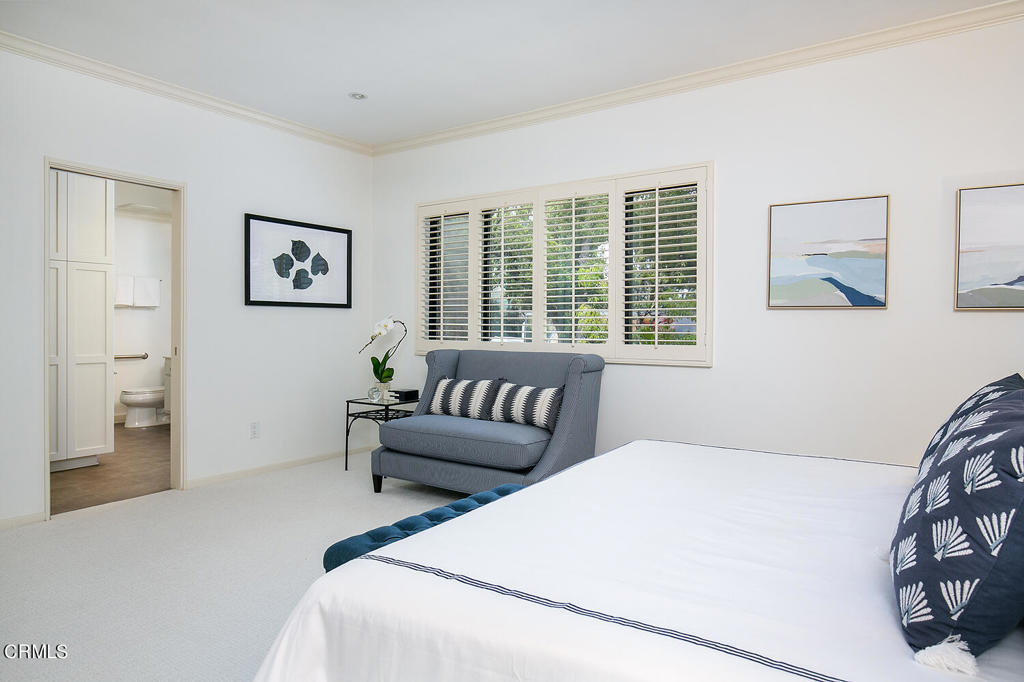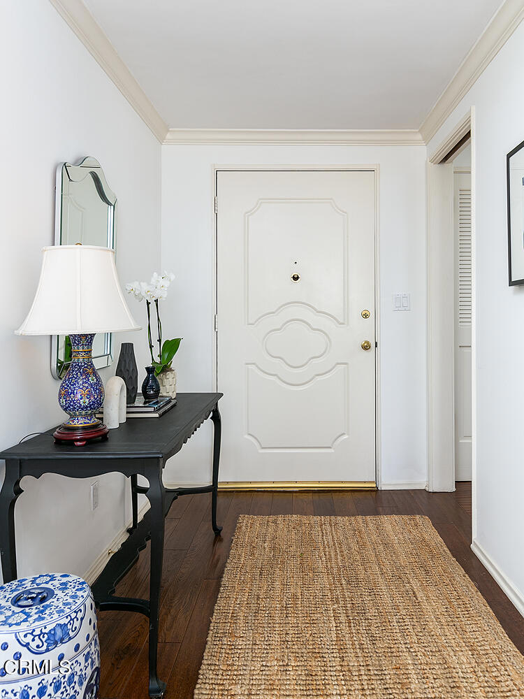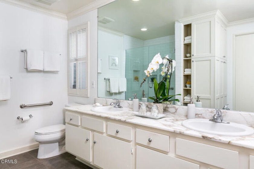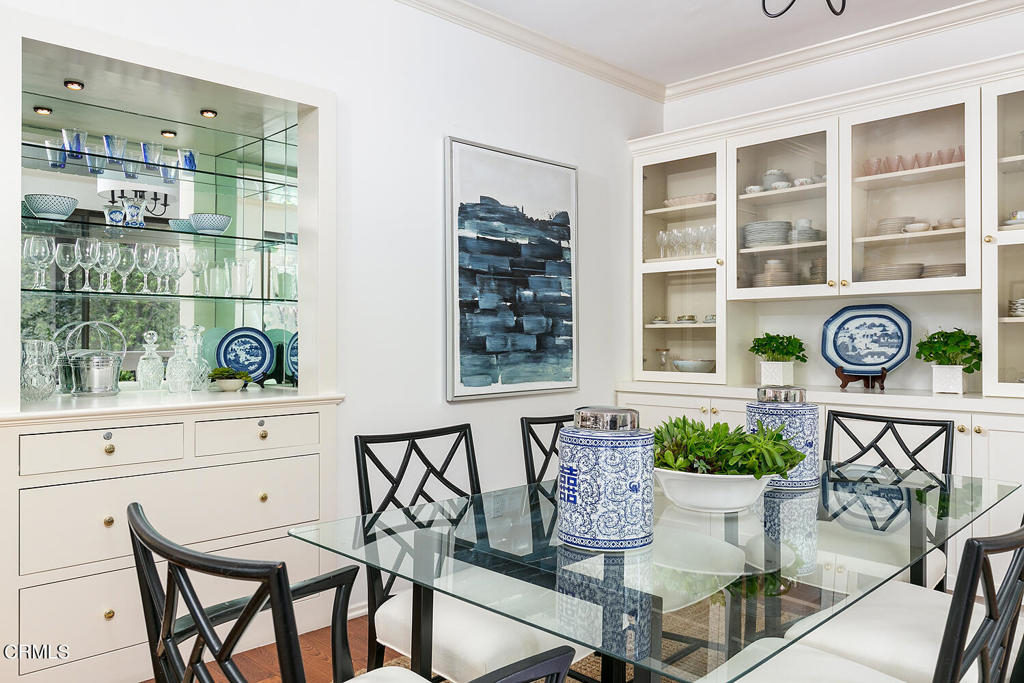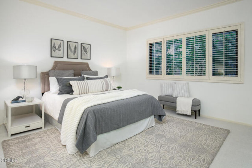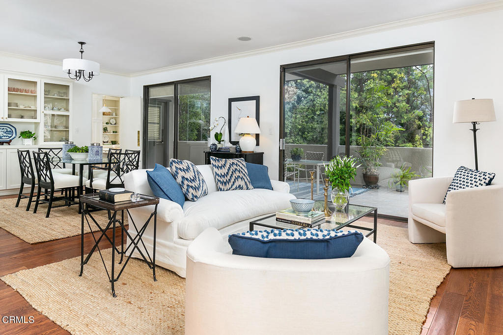 Don't miss seeing this upscale, yet relaxed ground floor, one story, corner unit in the coveted Ardmore House. Located on what was once nicknamed Millionaire's Row, this home exudes pride of ownership, with elegance and sophistication throughout. Freshly painted, with new light fixtures and new carpet, this home is truly move-in ready. Boasting a large covered patio, accessible from both the dining and living rooms, as well as the kitchen, this home allows for wonderful Southern California indoor/outdoor living and dining. The kitchen is spacious and updated, with a washer and dryer conveniently located inside, as well as a cozy spot for in-kitchen dining, with exceptional storage. The dining room allows for all of your collectibles to be easily displayed in the gorgeous custom built-in, with both cabinets and drawers. A bar adds further value and convenience for entertaining, with pretty exterior views through the doors to the balcony. The spacious living room features a large fireplace, custom window shutters, as well as an additional seating area, just perfect for a reading nook. The front bedroom is currently being utilized as a home office, and offers substantial built-in storage as well as a desk and full work station with additional space. The primary bedroom suite is a welcome respite and retreat, with light galore, custom shutters, new carpet, as well as an area for relaxing with plenty of space for additional furnishings. The primary bath is elegantly appointed, with an oversized shower, marble countertop, dual sinks and convenient linen closet and storage. The walk in closet is large and custom built. The guest bedroom and/or second primary bedroom is also ensuite and has fresh paint, new carpet and a new light fixture. The unit comes with two side by side parking spaces, and a large storage closet in the garage. The Ardmore House is one of the most coveted complexes on South Orange Grove Blvd. and also one of the few buildings with an on-site manager. There is a great sense of community, which can be found at the pool or a visit to the Valley Hunt Club, located just across the street. This home is light and bright with a flowing floor plan, ready for its new owner! Truly move-in ready, spotless and welcoming! Come visit and see for yourself.