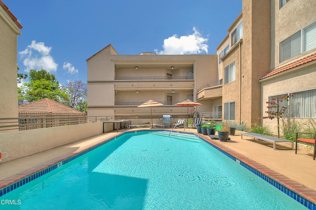 Elegantly updated condo located in the heart of Pasadena is a dream come true. Remodeled kitchen features new quartz counters, new recessed lights, new sink and faucet in addition to extensive cabinetry and stainless appliances. A breakfast bar opens to the living room and is perfect for entertaining. The generous living room boasts a beautiful fireplace and leads out to the expansive patio with room enough for an outdoor dining set and a spacious private garden. There is also a dining room with lovely chandelier.The floor plan is one of the most sought after in the complex with 2 primary suites on either side for privacy. Both updated primary bathrooms feature new quartz counters, new light fixtures, sinks, and faucets. One suite features an expansive closet and a separate vanity area in the bathroom. The other one boasts sliding glass doors with direct access to the patio. The move in condition unit is freshly painted with quality laminate wood floors, indoor laundry, and two parking spots. This complex features a pool, and spa. The best is truly within reach with restaurants, shopping, cafes, parks, freeways, and Old Town Pasadena just moments away.