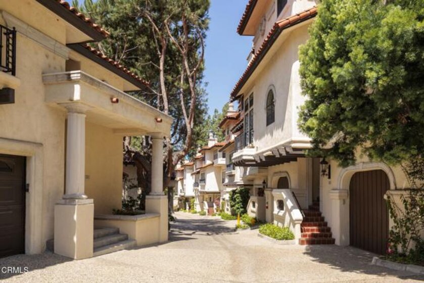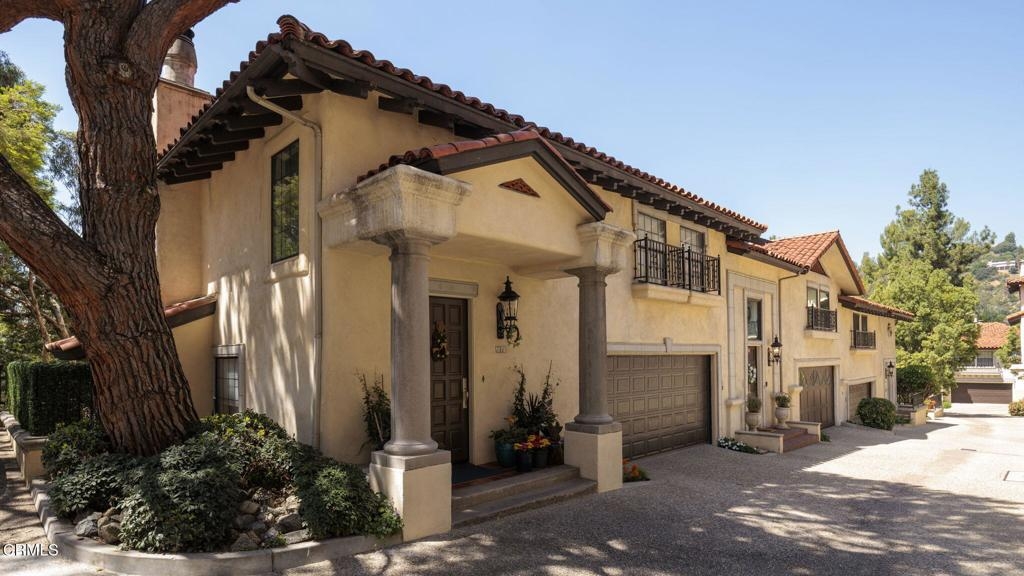 Some addresses in Pasadena simply carry a different kind of weight - where the setting, the architecture, and the way of living all come together without asking for a single compromise. North Arroyo Boulevard is one of those streets, and Altos Arroyo is among its most sought-after addresses.This gated Mediterranean community sits on nearly two acres of lushly landscaped grounds, with terracotta rooflines, stucco facades, and arched entryways that set a gracious tone from the moment you arrive. The community pool and spa offer residents a private retreat without leaving home. Just beyond the gates, the Arroyo Seco trail, Brookside Park, Brookside Golf Course, the Norton Simon Museum, the Pasadena Museum of History, and the Rose Bowl are all just minutes away.Number 52 is one of the community's most livable and well-considered floor plans: 2,336 square feet (per assessor) across two thoughtfully arranged levels, reflecting genuine pride of ownership and move-in condition.The main level was designed for the way people actually live. Soaring high ceilings open the sun-drenched space from the moment you enter, and the flow between the living room, formal dining room, and eat-in kitchen feels both natural and easy. Updated flooring runs throughout, treetop views filter in through the windows, and a gas fireplace anchors the living room with quiet warmth. A half bath, dedicated laundry room, and pantry handle the everyday details without compromise. The attached two-car garage adds the ease that buyers in this corridor quietly expect.Upstairs, all three bedrooms offer genuine separation from the main living areas. The spacious primary suite is the centerpiece: a spacious bedroom with its own gas fireplace, two walk-in closets, and a luxurious bath featuring dual sinks with generous storage, a soaking tub, and a separate shower. Two additional well-proportioned bedrooms share a full bath with separate sinks - a detail that serves families and guests alike. Updated kitchen and baths throughout ensure the finishes are as polished as the setting.This rare listing converges community, condition, and location and it's ready for you now. Don't miss this home and make it 'Where Your Home Happens.'
