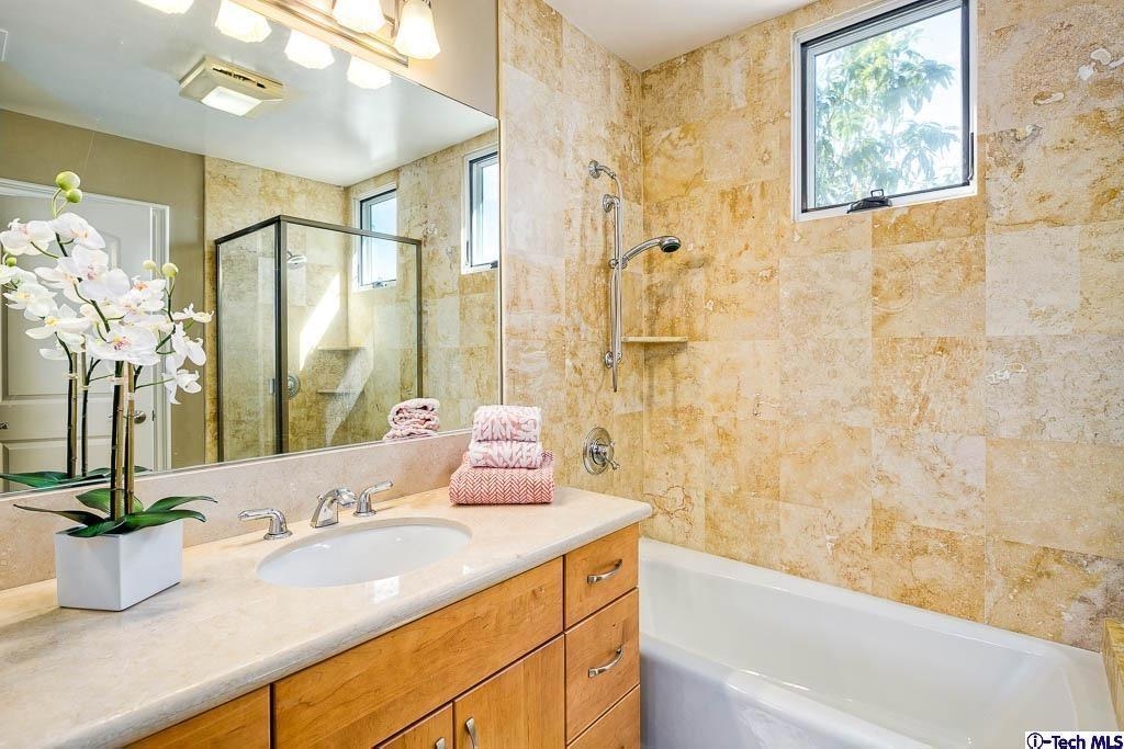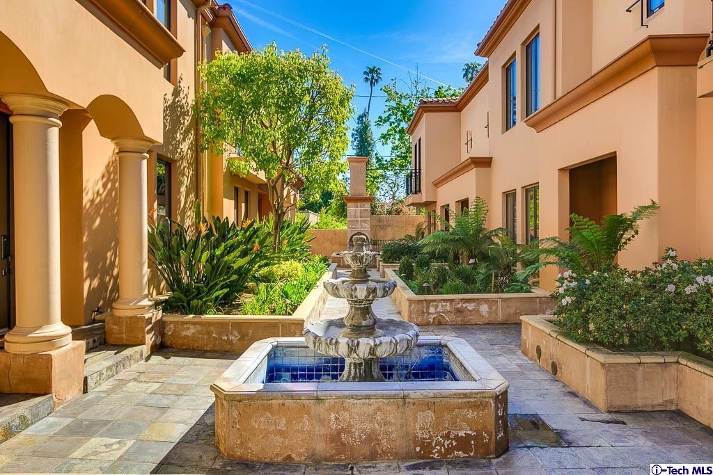 Elegant Mediterranean townhouse with modern and sophisticated amenities. Stroll through the picturesque courtyard lined with beautiful fountains and landscapes. This end unit offers maple hardwood floor, granite countertops, double paned windows, a formal entry, and travertine stone tiled bathrooms. Relax in front of the cozy fireplace or take in the sun on the private patio. 3 spacious bedrooms including a walk-in closet in the master suite. Bonus space for office/den. 2 car garage with storage space and in-unit laundry. Conveniently located near shops, restaurants, Metro. This townhouse combines comfort and the convenience that Pasadena has to offer.