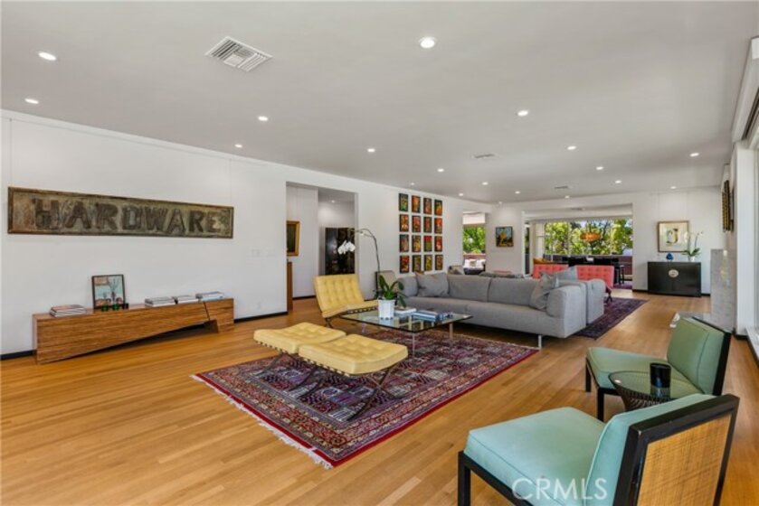 The Capri, as 660 South Orange Grove Boulevard was originally called, was built in in 1952. There are only 12 units situated on over 1 1/2 acres. Unit B is the largest and was originally occupied by the builder. You enter into a dramatic foyer that leads to a large, open living room with multiple floor to ceiling windows, offering panoramic views. An extensive renovation was performed. The original entrance door was replaced by double asymmetric mahogany doors. Downlighting was added throughout. A modern marble mantle was added in the living room. The hardwood floors were refinished in a light natural color matte finish. A contemporary kitchen, designed by the Italian firm Poggenpohl, was installed with Miele and Liebherr professional quality stainless appliances. Off of the hallway, is a temperature controlled wine room which holds approximately 325 bottles. The three ensuite updated bathrooms were designed by noted Pasadena architect Doug Ewing. A powder room completes the bath count. Gallery quality picture hanging systems were mounted in several rooms and display the owners art collection. In addition, there are two storage rooms. There is also a large attic. In addition there is a private two car garage conveniently located near the unit. Each of the 12 units owns a 1/12th interest in the additional guest parking. This is a unique opportunity to own a large, high end midcentury condominium at a price far more reasonable than new construction offered on the Boulevard.