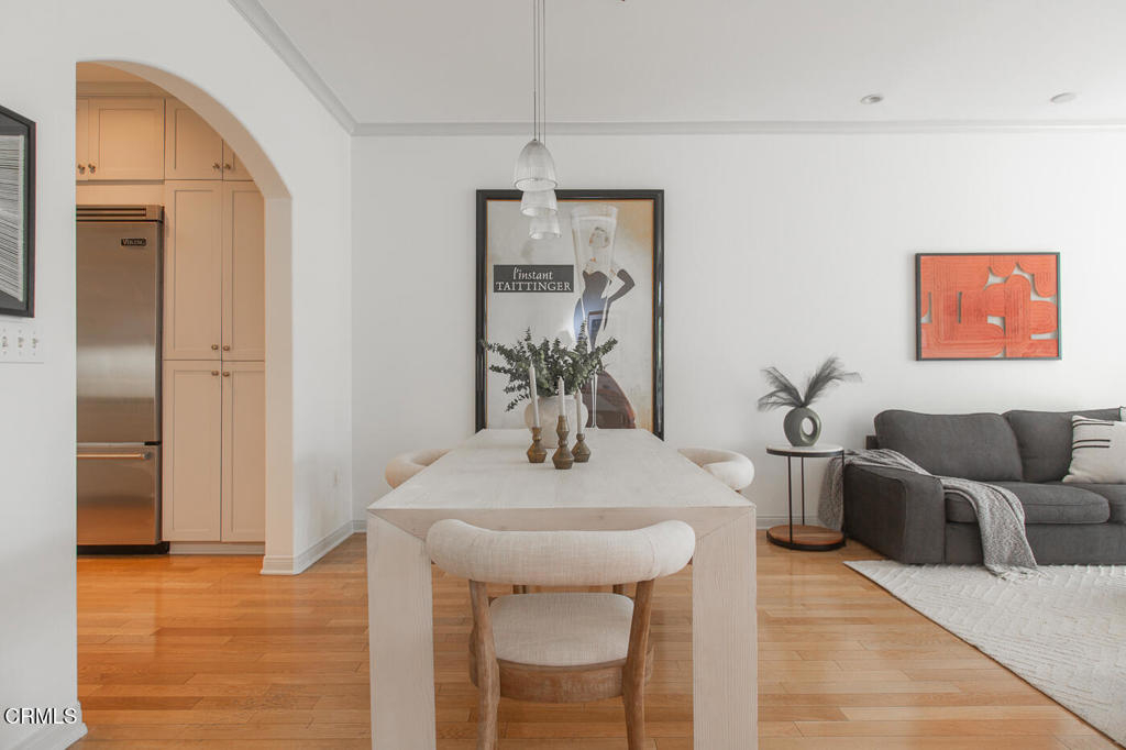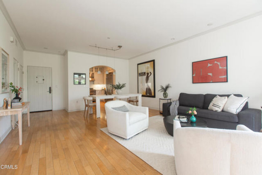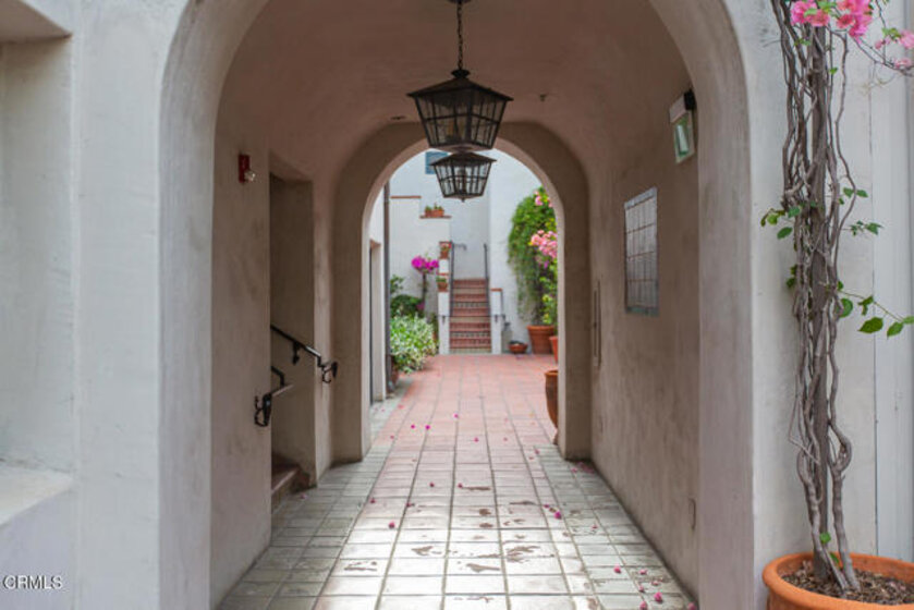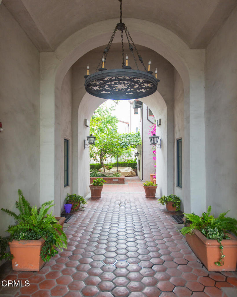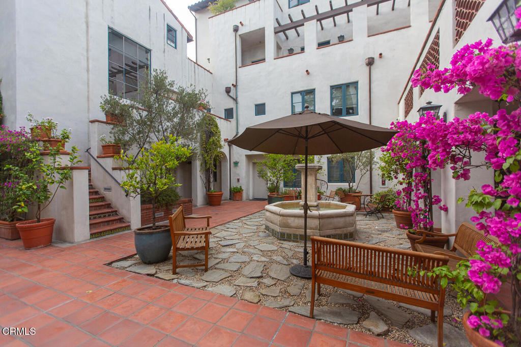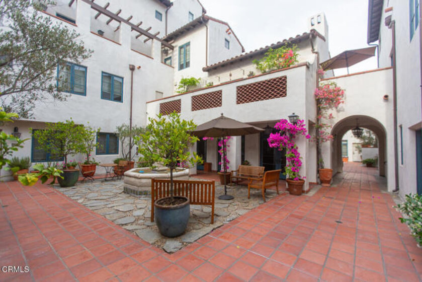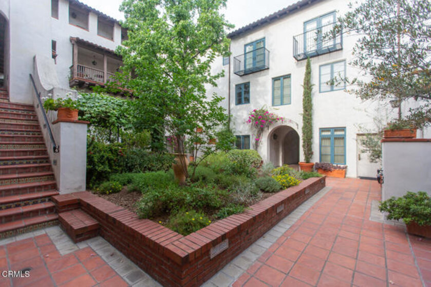 This elegant 1-bedroom, 1.5-bath residence at Granada Court captures timeless Pasadena living in the heart of Playhouse Village. Thoughtfully designed for both comfort and functionality, the home offers a spacious layout, a rare guest powder room, in-unit laundry, and abundant natural light throughout.The well-appointed kitchen, featuring high-end Viking appliances, flows seamlessly into the dining and living areas. The living room features a charming corner fireplace that adds warmth and character, and French doors open to a Juliet-style balcony with views of lush greenery and the San Gabriel Mountains.Additional highlights include secured parking for one vehicle and a generous private storage room (approximately 7' x 10'6') both conveniently accessible via the community elevator.Granada Court is renowned for its beautifully maintained courtyards, tranquil fountains, library, concierge service, and BBQ area, offering a serene, Mediterranean-inspired setting just moments from Pasadena's premier dining, shopping, and entertainment.