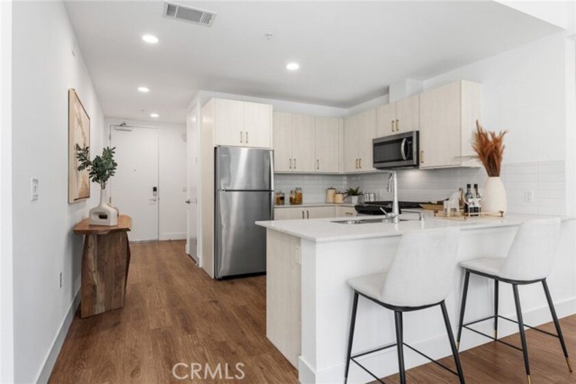 MW Lofts Pasadena represents the pinnacle of modern urban living in one of Southern California’s most desirable locations. For sale for the first time, this brand new condominium project features 115 units. Unit 228 is a 2 bedroom, 2 bathroom floor plan, spanning 1,249 SF. The spacious kitchen comes with tons of countertop space, and opens into a great room with an abundance of sunlight. Huge floor-to-ceiling windows lead to an oversized balcony, and extend to the primary bedroom. The primary bedroom is en-suite with dual sinks and bathtub, and laundry is included and in-room. Window shades are included. This sophisticated condominium combines cutting-edge design with refined elegance, offering spacious, open-concept floor plans, high-end finishes, and panoramic views of the surrounding city and mountains. Each residence artfully crafted with premium materials and expansive windows that flood the interiors with natural light. Residents of MW Lofts enjoy exclusive amenities, including controlled access, a state of the art fitness center, private rooftop lounge, and terrace, all in close proximity to Pasadena’s finest dining, shopping, and cultural landmarks.