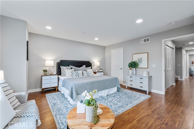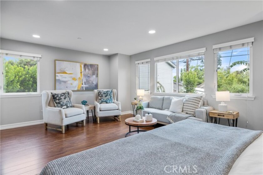 Welcome home! Beautiful three-story luxury townhome perfectly located in the heart of Pasadena. Nestled on a quiet, tree-lined street within a small gated community, this newer-built home offers both privacy and convenience. Within walking distance to Pasadena City College, banks, restaurants, and public transit, and just minutes from Caltech, the Metro Link Station, and Old Town Pasadena. The home features five spacious bedrooms and three and a half bathrooms with an open, light-filled floor plan. The modern kitchen includes granite countertops, a breakfast bar, and wood cabinetry, flowing into the living and dining areas—perfect for entertaining. Highlights include recessed lighting, Milgard windows, sound-reducing Gypcrete flooring, and a built-in security system. The master suite and two bedrooms are on the second floor, with two more bedrooms on the third. Enjoy a private backyard, two-car attached garage, tankless water heater, and low HOA dues in a well-maintained community.