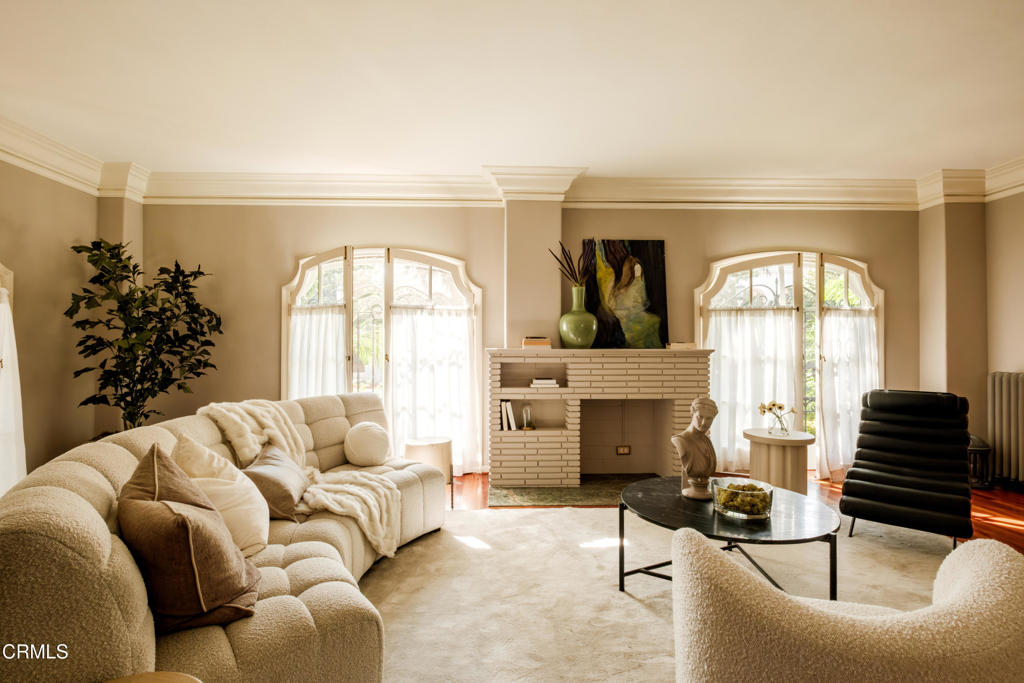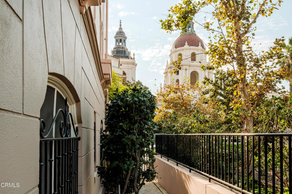 Step into timeless elegance, where Old World charm meets modern urban living in one of Pasadena's most iconic and walkable locations. Covered by the Mills Act, property taxes are VERY low and all utilities are included in HOA fees for even more savings and peace of mind. Nestled within the last remaining wing of the historic 1920s-built Maryland Hotel, designed by Edward B. Rust in the distinguished Mediterranean Revival style, this rare and spacious 2-bedroom, 2-bath residence is a one-of-a-kind opportunity to own a piece of Pasadena's heritage.Boasting 1,585 square feet of character-filled living space, this ground-level unit is framed by nine arched French doors that flood the home with natural light and provide seamless indoor-outdoor flow. High ceilings with crown moulding and columns, paired with cherry floors, elevate the interiors with sophistication. From your living room or dedicated office nook, enjoy direct, postcard-perfect views of Pasadena City Hall, just across the street.The master bedroom suite features an en suite bathroom, ample closet space, and a charming alcove ideal for a vanity or reading nook--plus two sets of French doors opening to the outside. The second bedroom offers flexible use as a guest suite, dining room, or creative studio, with its own bathroom and closet for added storage.An intimate dining area with custom built-in shelving invites slow mornings, while the thoughtfully designed kitchen includes stainless steel appliances and a unique cut-out door leading to a quaint outdoor passageway--ideal for fresh air or a morning coffee.Other conveniences include community laundry, two parking spots (one on-site and one at Las Fuentes), guest parking, and welcoming common areas with indoor and outdoor seating. The building is directly adjacent to the Plaza de las Fuentes, surrounded by landmark neighbors like All Saints Church, Alexander's Steakhouse, California Pizza Kitchen and The Paseo Shopping Center.With dozens of restaurants, boutiques, and the Metro Gold Line station just a few blocks away, this unit is perfect for those seeking an elevated, walkable lifestyle in a storybook setting.Don't miss your chance to live in Pasadena's past--while enjoying the best of its present.